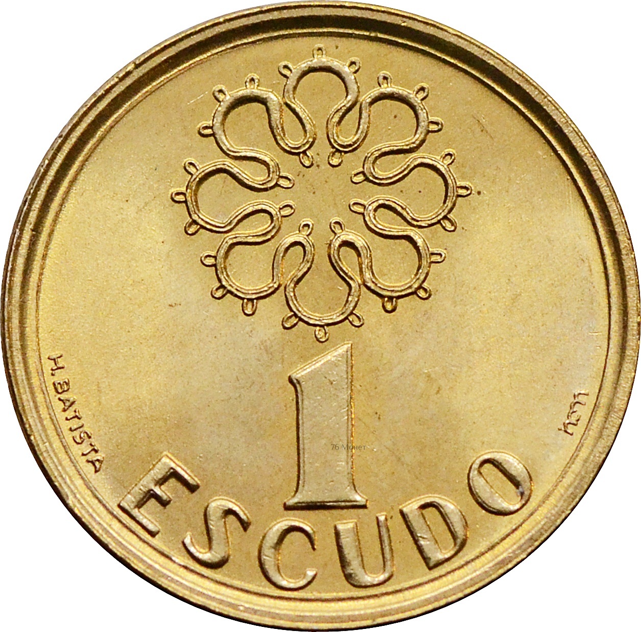 Реверс: в центре монеты орнамент, под которым указан номинал: "1 ESCUDO".