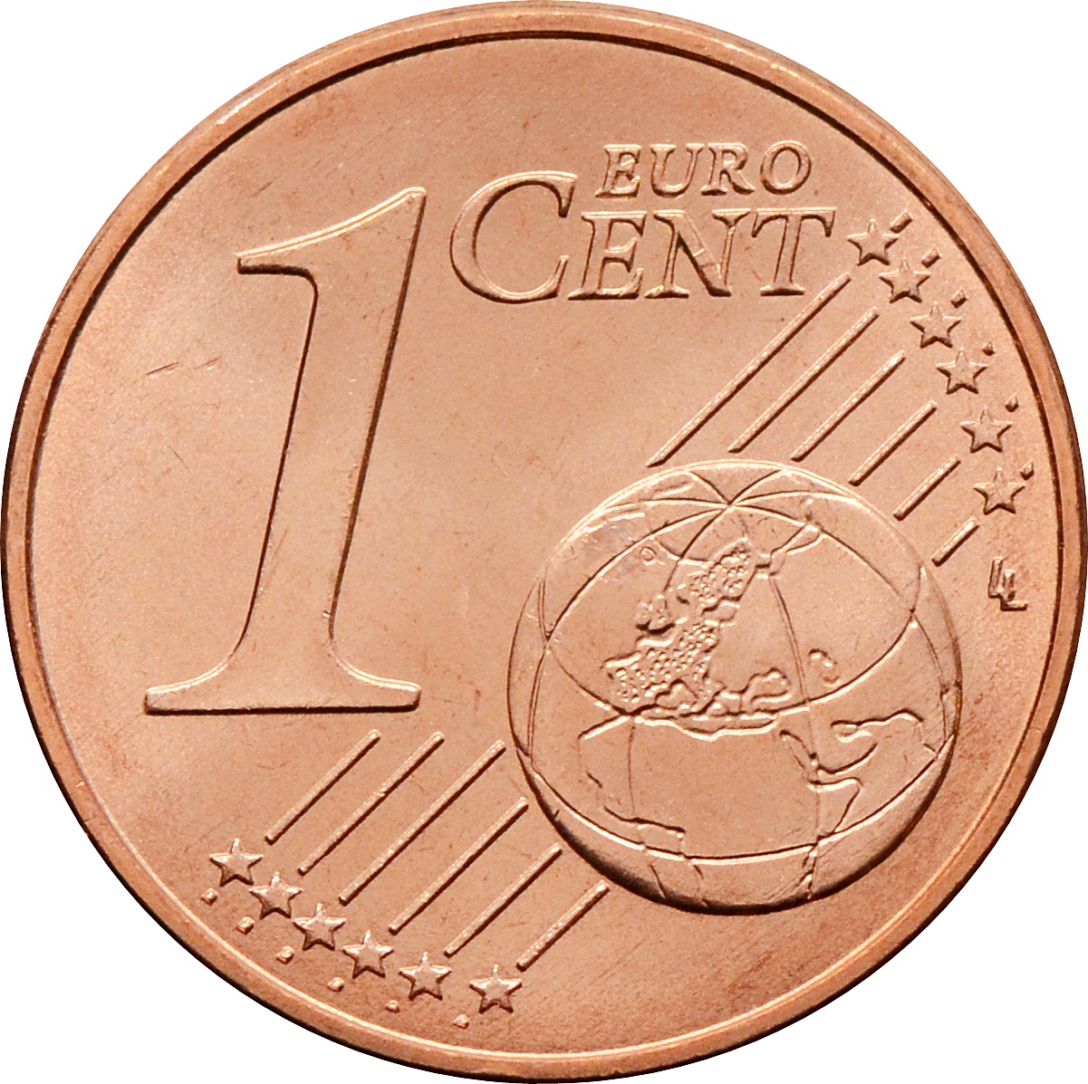 Реверс: в центре указан номинал монеты: "1 EURO CENT". От нижнего левого к верхнему правому краю, по диагонали, проходят шесть линий, на концах которых расположено 12 звёзд. Справа внизу на середине линий изображён земной шар, на переднем плане земного шара представлена европейская часть континента.