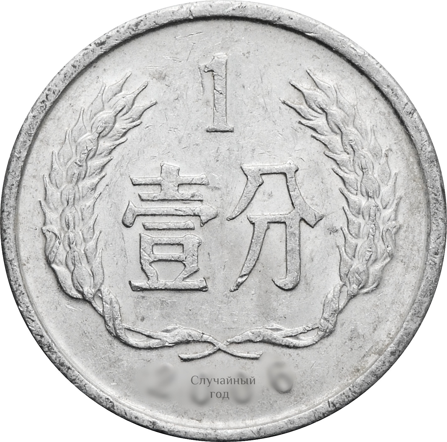 Реверс: по центру монеты указан номинал - цифра "1", снизу иероглифами надпись "фэнь". Номинал заключен в импровизированный венок. В самом низу размещен год чеканки.