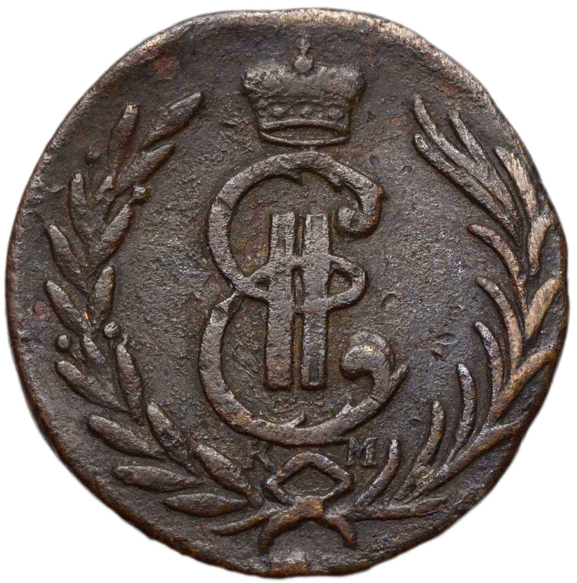 Аверс: в центре рельефное изображение вензель Екатерины II. Над ним императорская корона. Под вензелем обозначение Сузунского монетного двора - буквы "К" и "М". Вокруг центрального изображения, вдоль канта, изображён венок из лавровой и пальмовой ветвей, которые, в нижней части, перевязаны лентой на узел бантом.