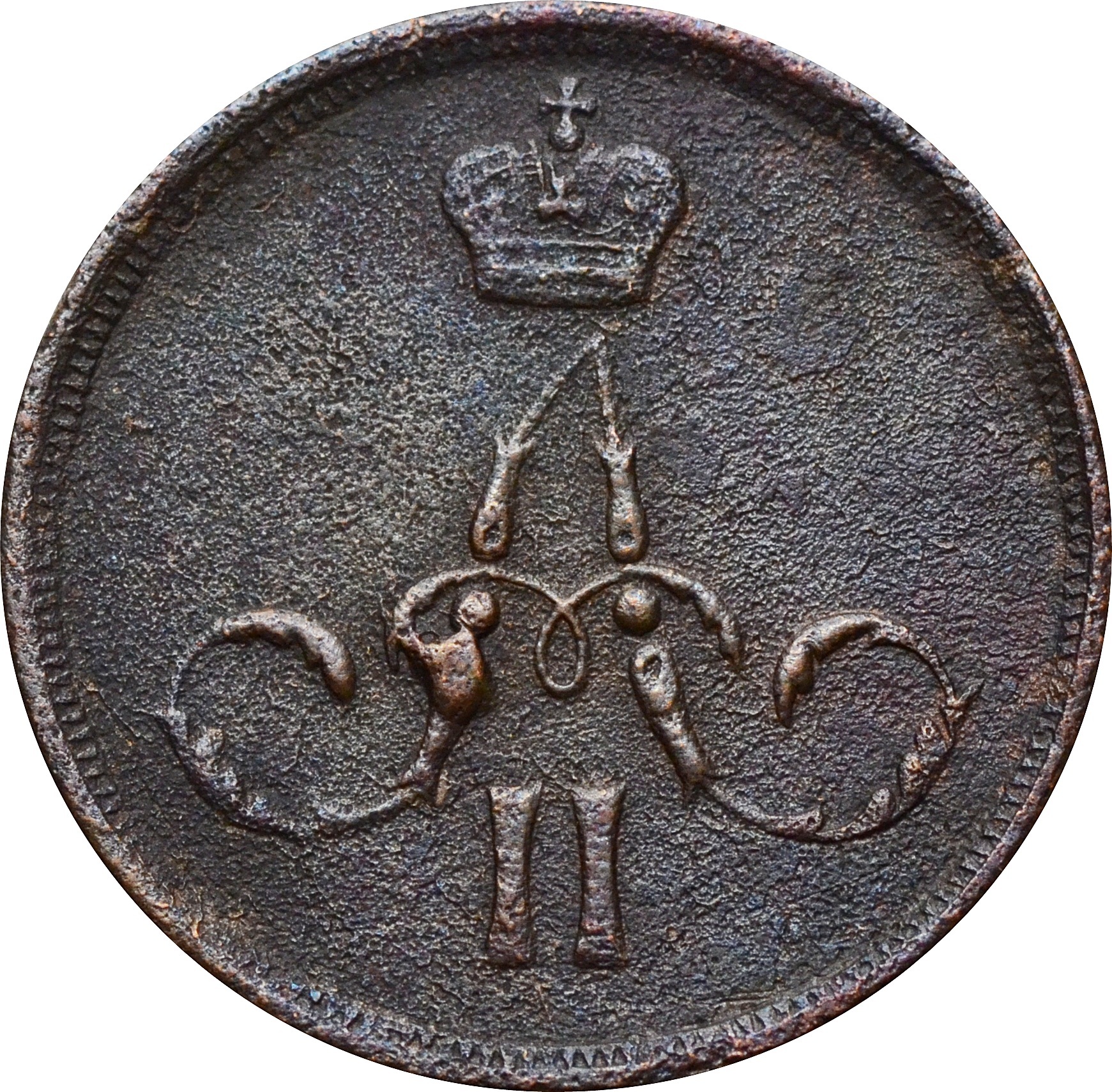 Монета 1 копейка 1860 ЕМ Александр II в состоянии VF.