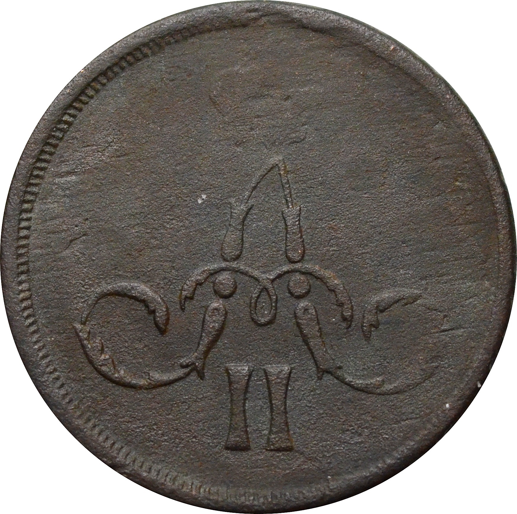 Аверс: по центру размещен вензель императора Александра второго с короной сверху.