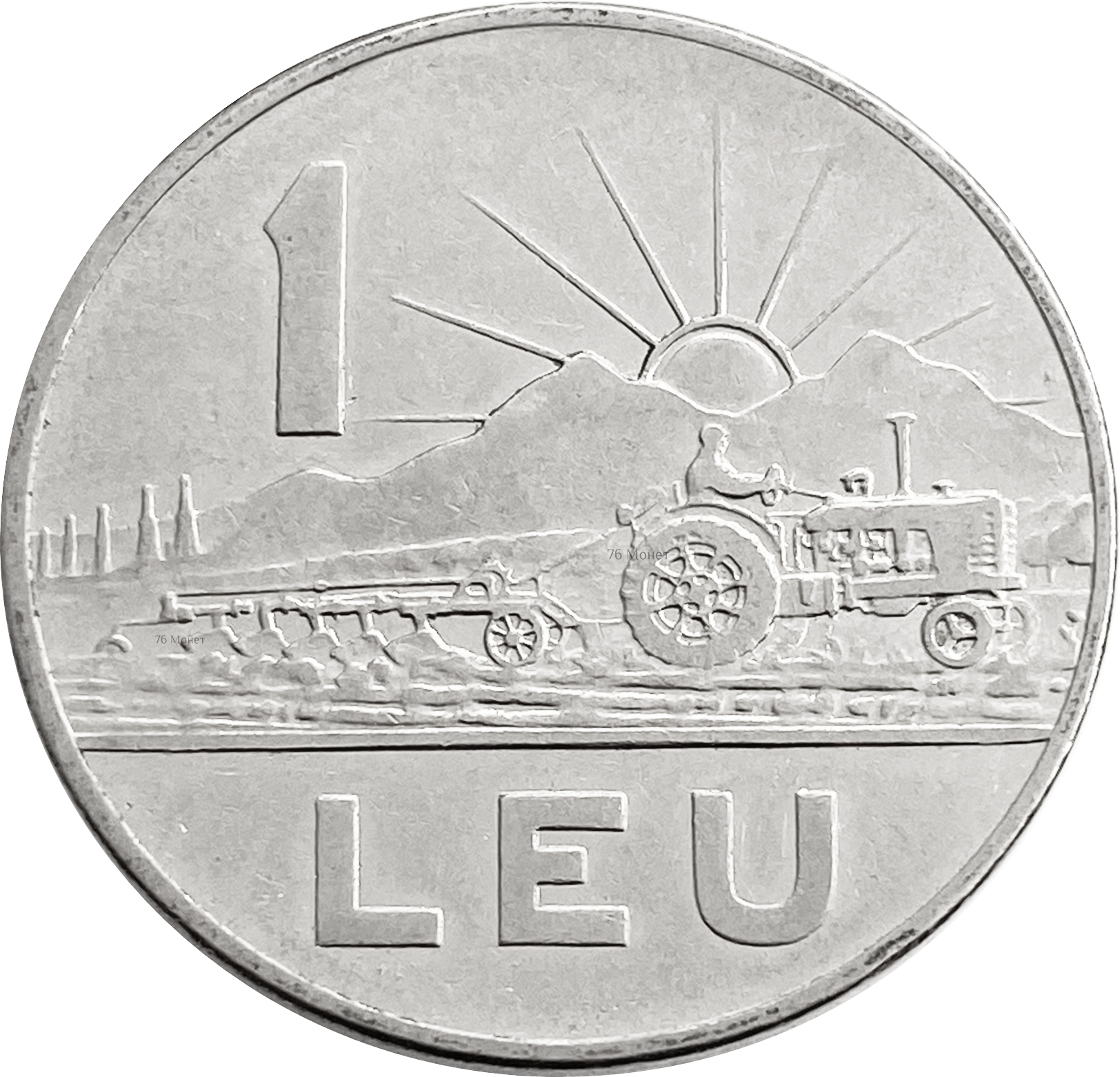 Реверс: по центру монеты изображен трактор пашущий поле. Сверху слева указан номинал цифрой: "1", снизу прописью: "LEU".