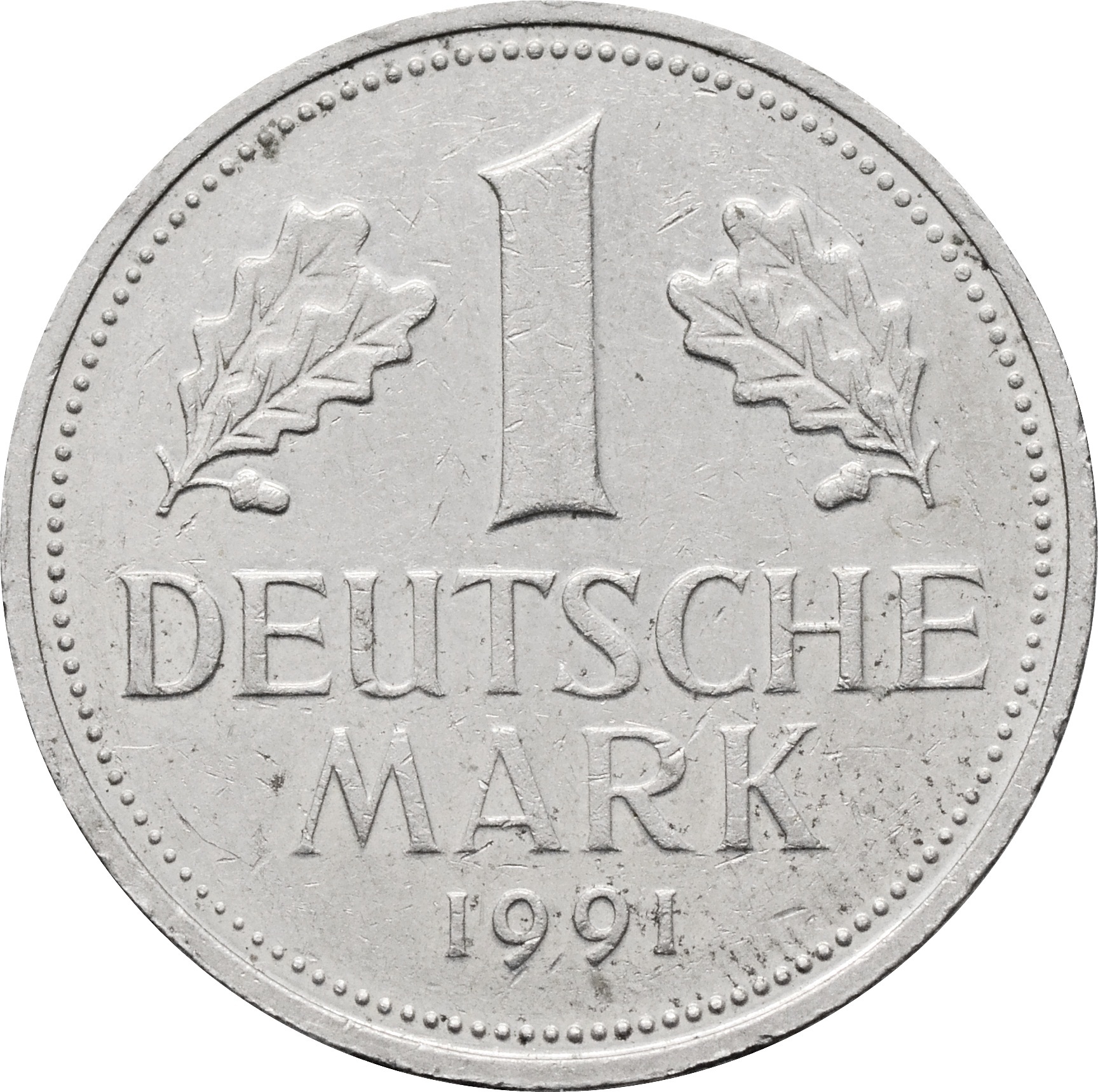 Реверс: в центре указан номинал: "1 DEUTSCHE MARK". Ниже год чеканки: "1991".