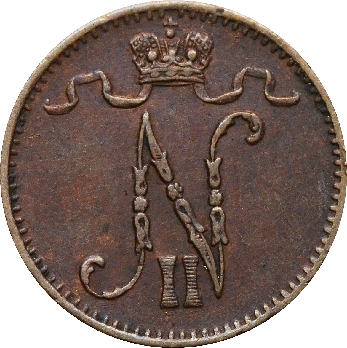 Монета 1 пенни 1903 Русская Финляндия, маленькая цифра "3" я в состоянии XF.
