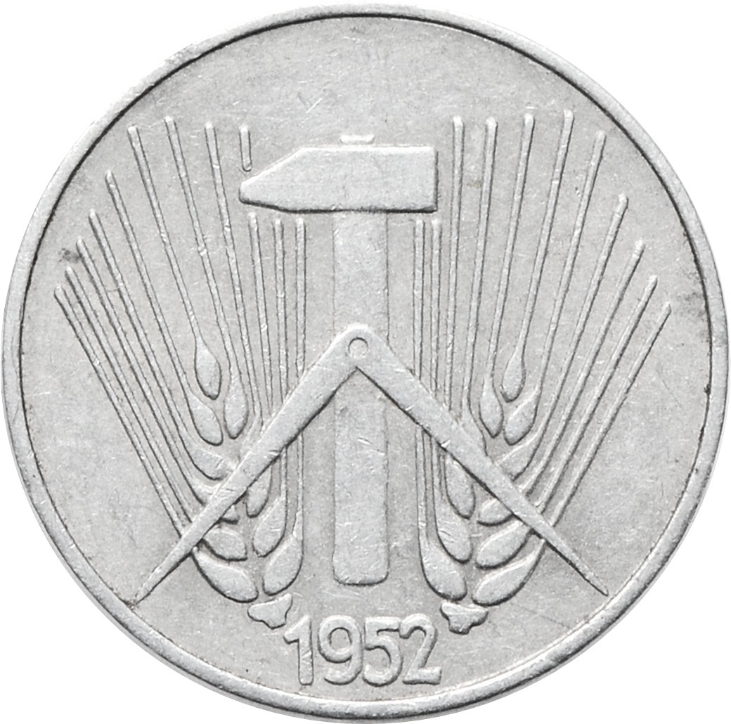 Аверс: по центру расположен молот и колосья. В самом низу указан год чеканки: "1952".