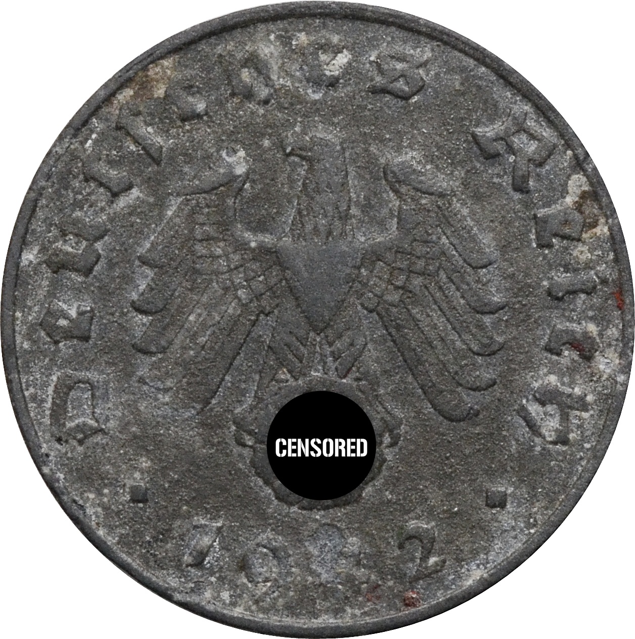 Аверс: по центру монеты изображен обращённый вправо геральдический орёл. Он держит в лапах венок со свастикой. Сверху полукругом надпись: "Deutsches Reich". Снизу указан год чеканки: "1942".