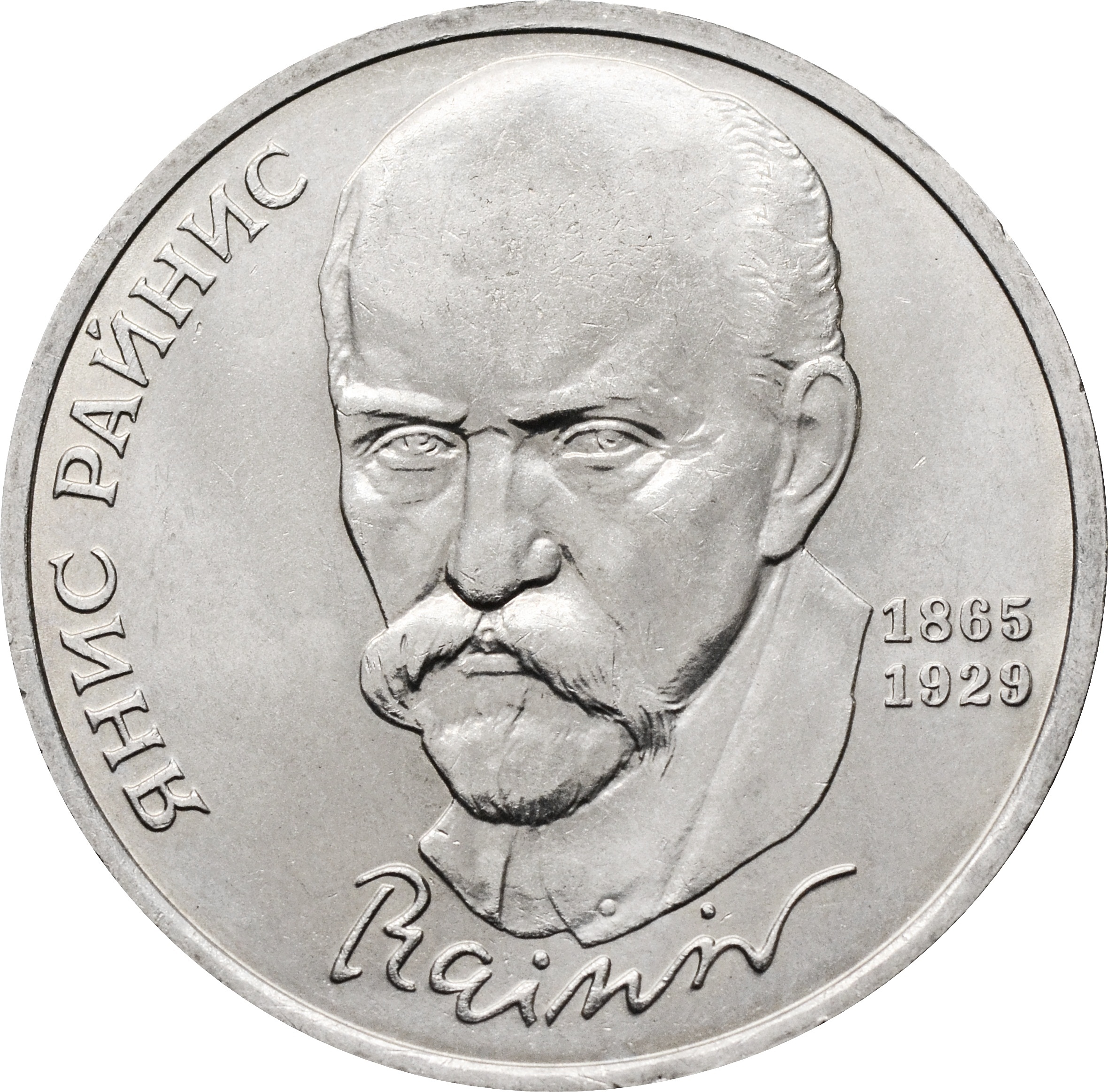 Монета 1 рубль 1990 «125 лет со дня рождения латышского писателя Яниса Райниса» UNC