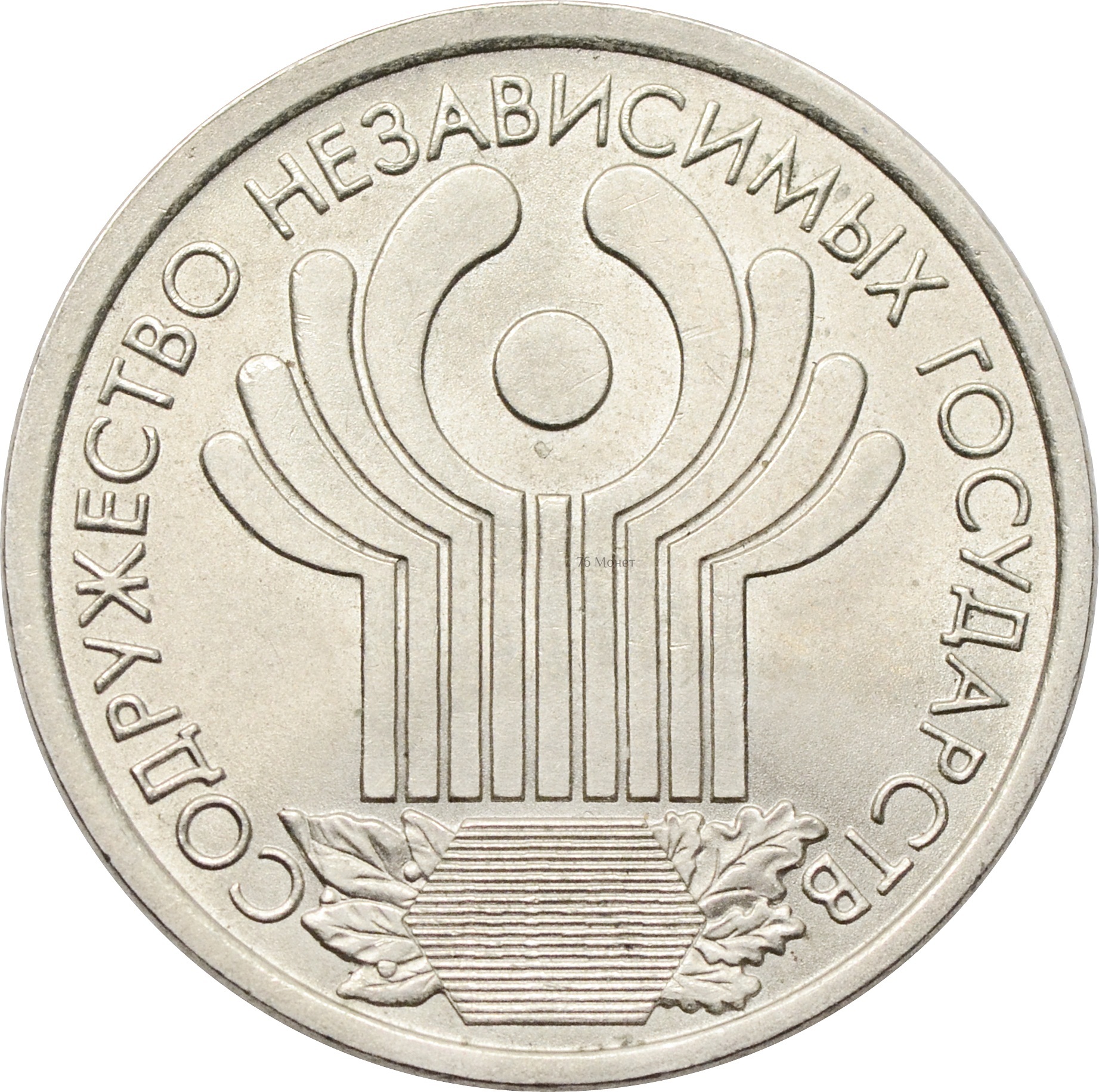 Реверс: прямо по центру изображение эмблемы Содружества Независимых Государств. Вдоль канта монеты расположена надпись: "СОДРУЖЕСТВО НЕЗАВИСИМЫХ ГОСУДАРСТВ".