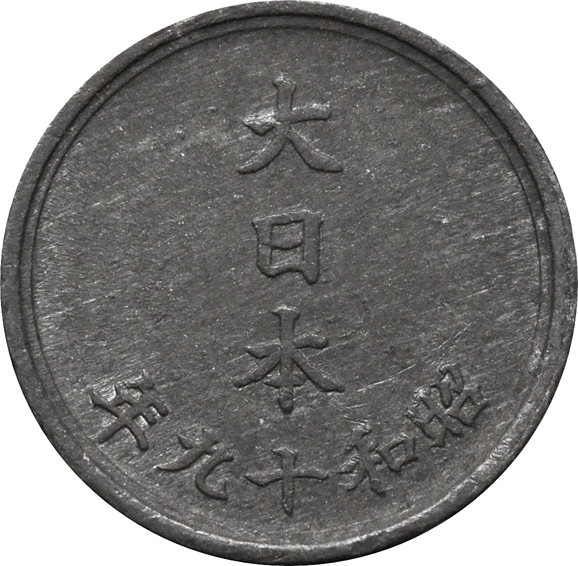 Реверс: в центре монеты надпись: "大日本". Снизу приписан год: "年九十和昭".