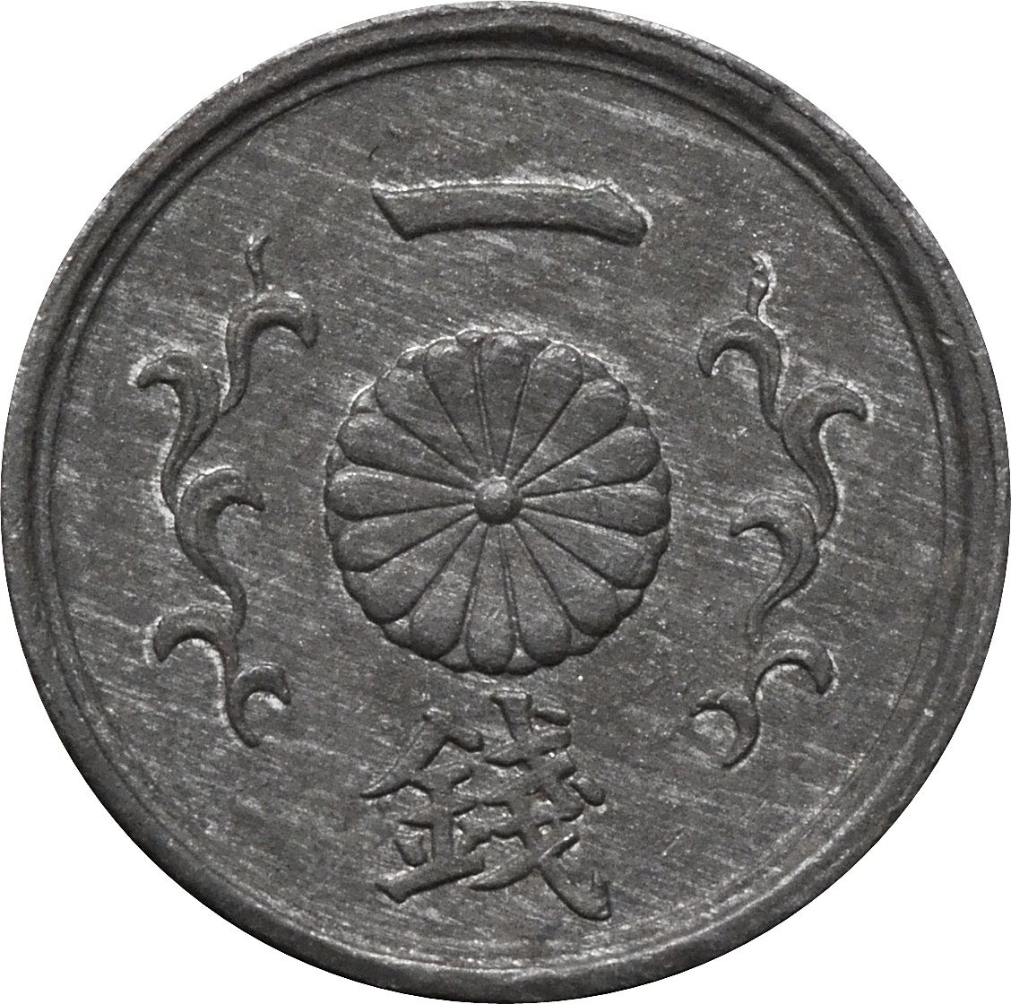 Аверс: по центру монеты изображена хризантема и надпись: "一錢".