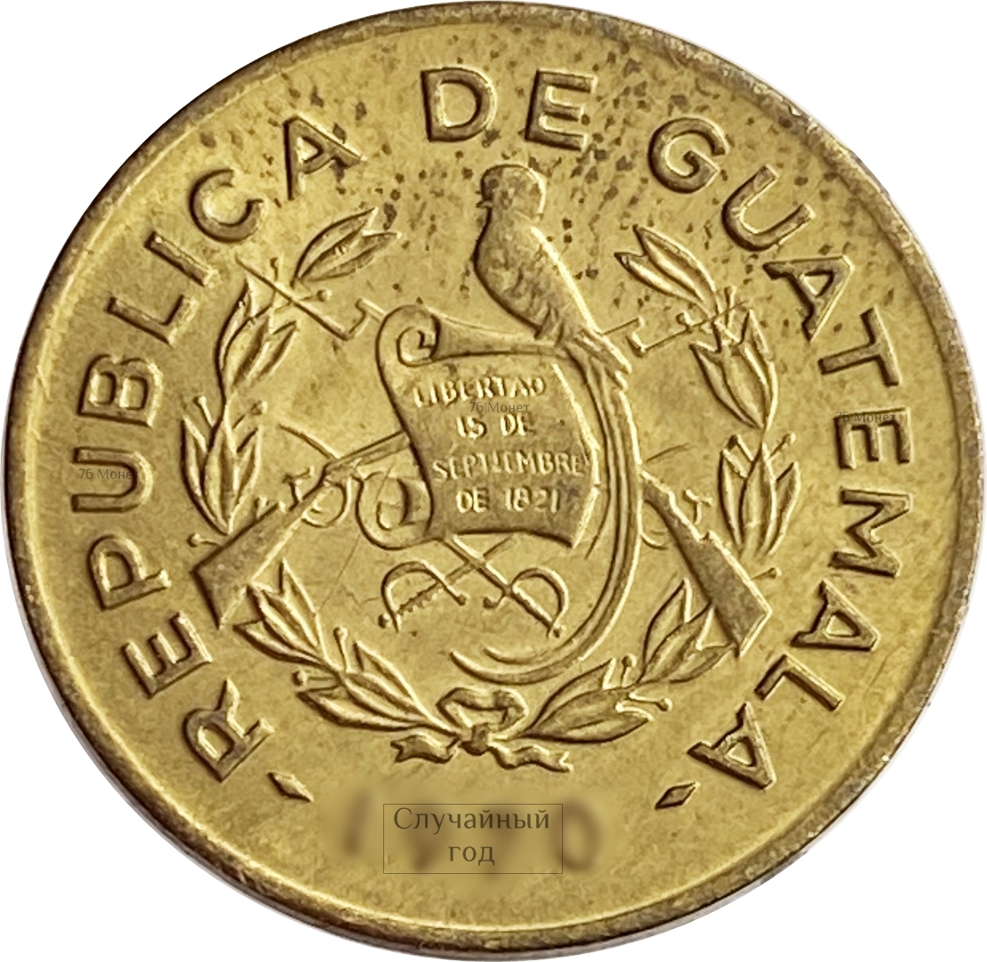 Аверс: в центре государственный герб Гватемалы, надпись по канту: "REPUBLICA DE GUATEMALA". Внизу расположен год чеканки монеты.
