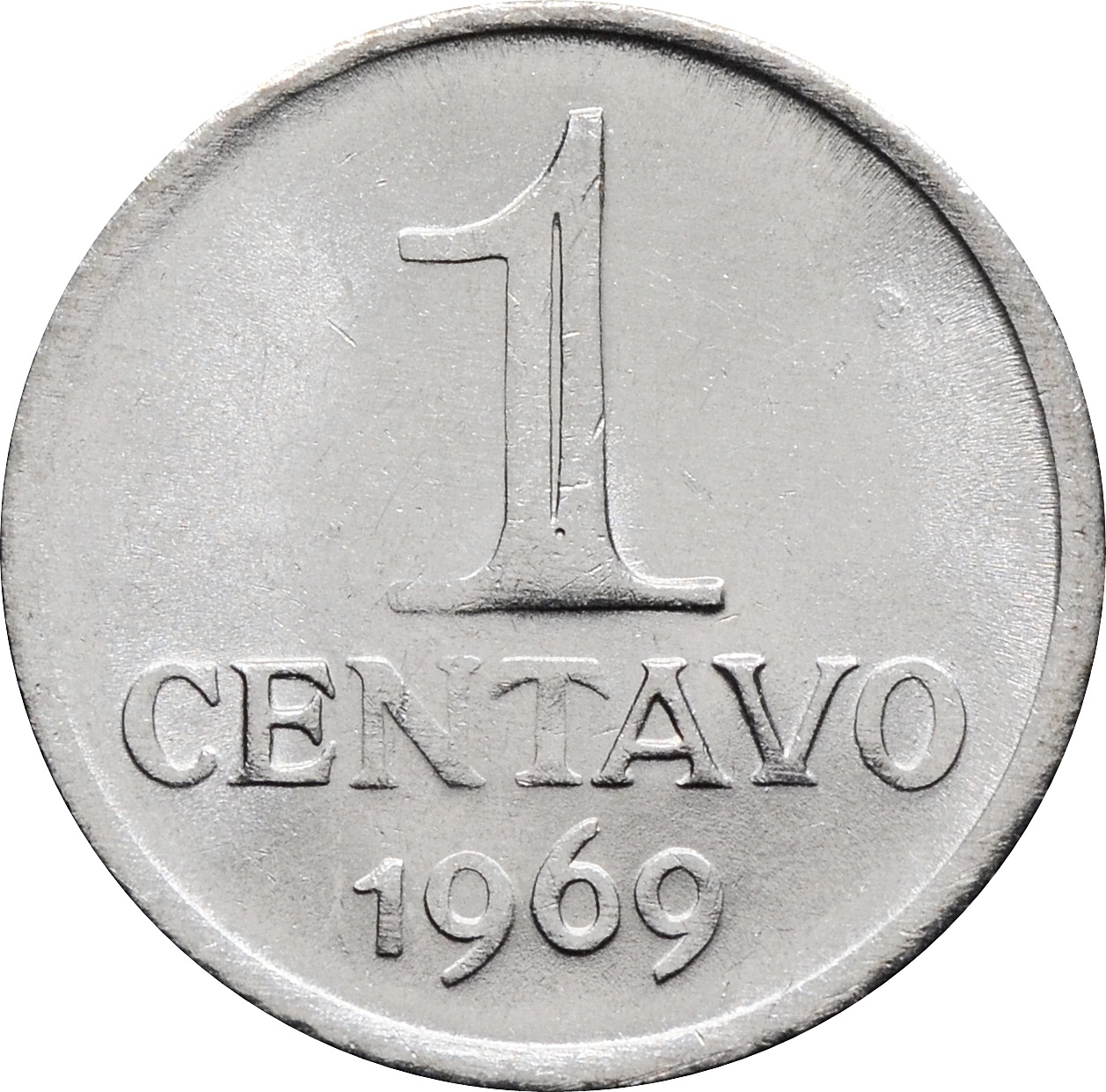 Реверс: в центре монеты указан номинал: "1 CENTAVO" и год чеканки: "1969".