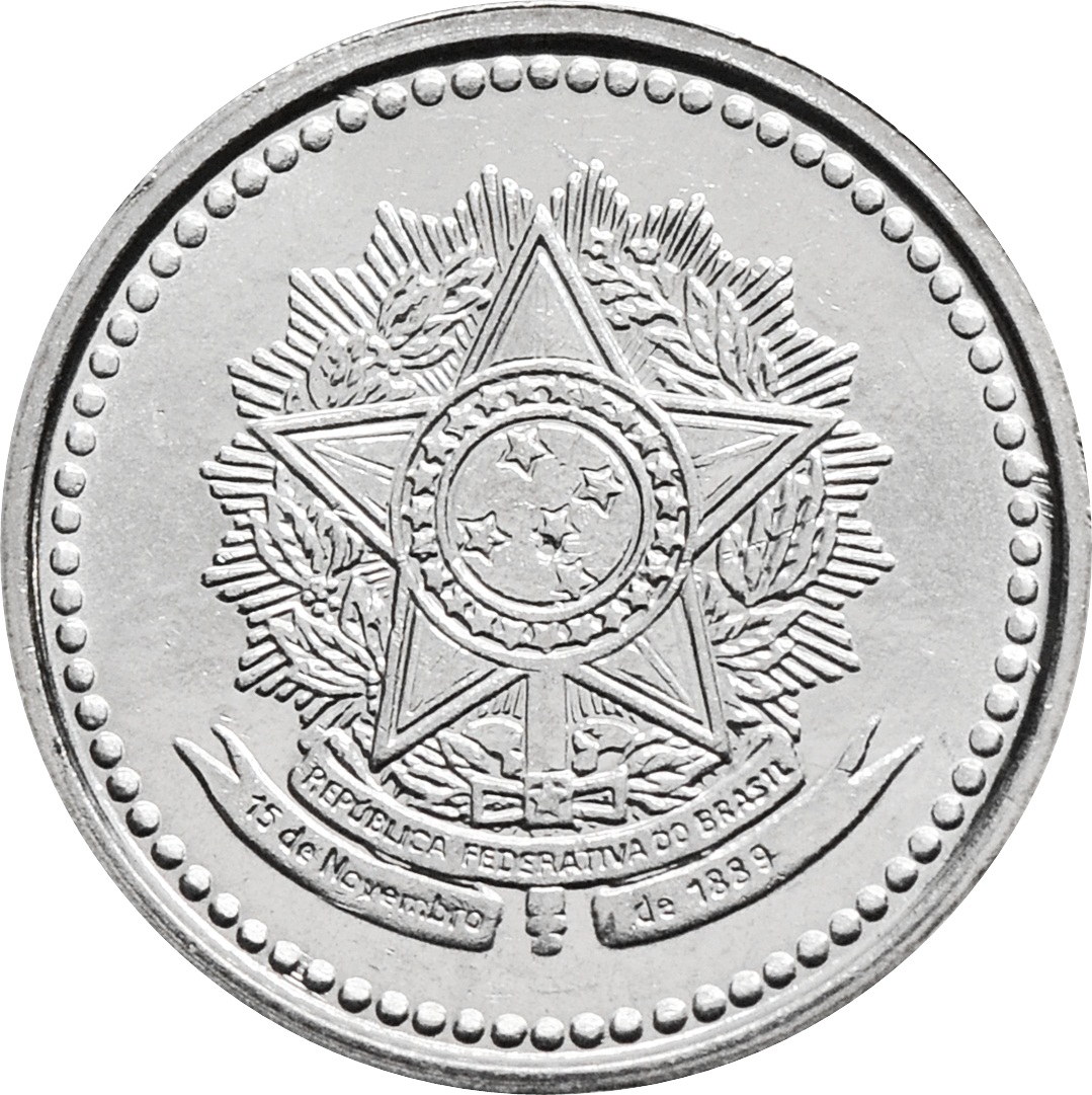 Аверс: по центру монеты изображен герб Бразилии.