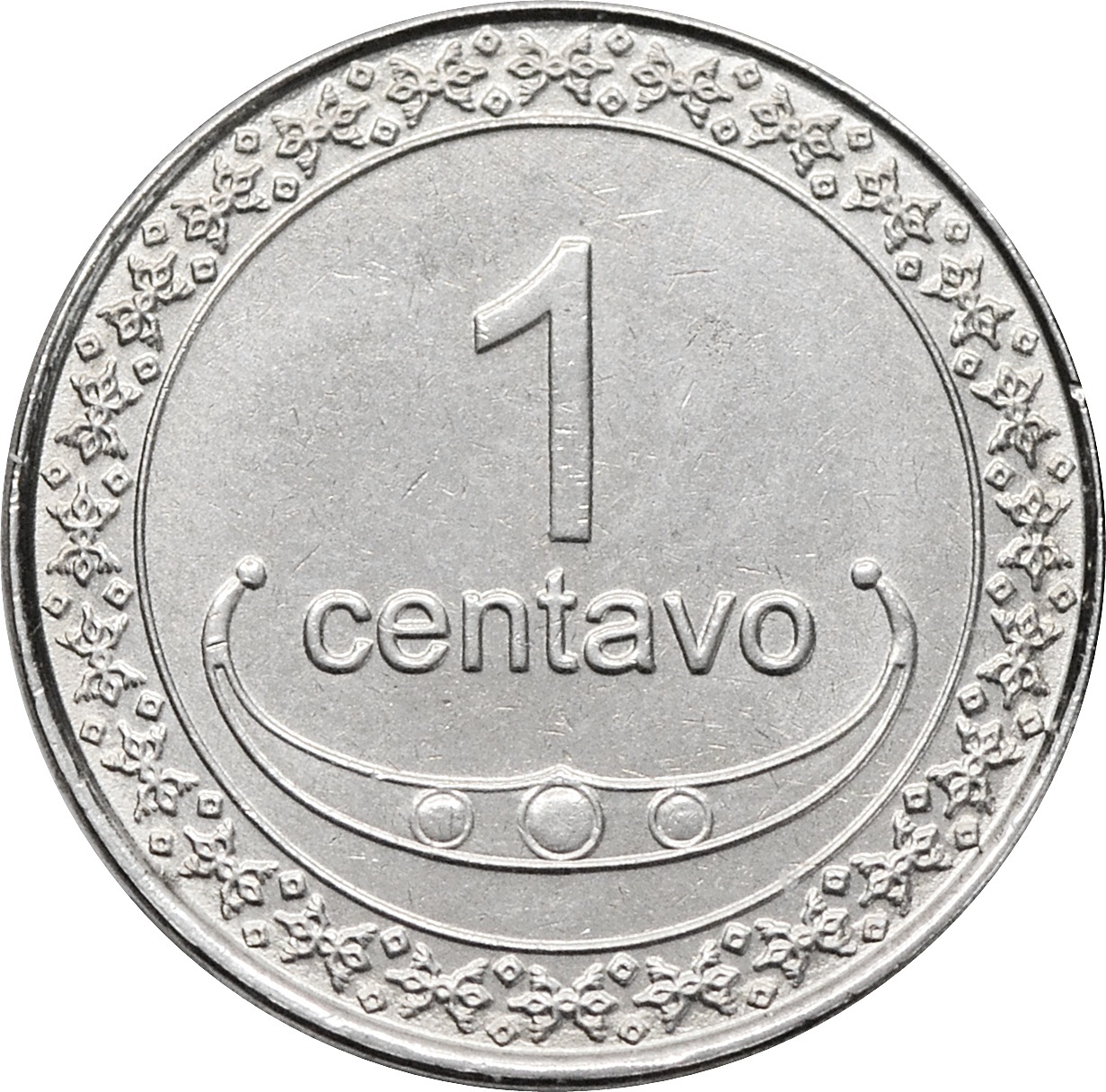 Реверс: по центру указан номинал: "1 centavo". Вдоль канта, по кругу, декоративный узор.