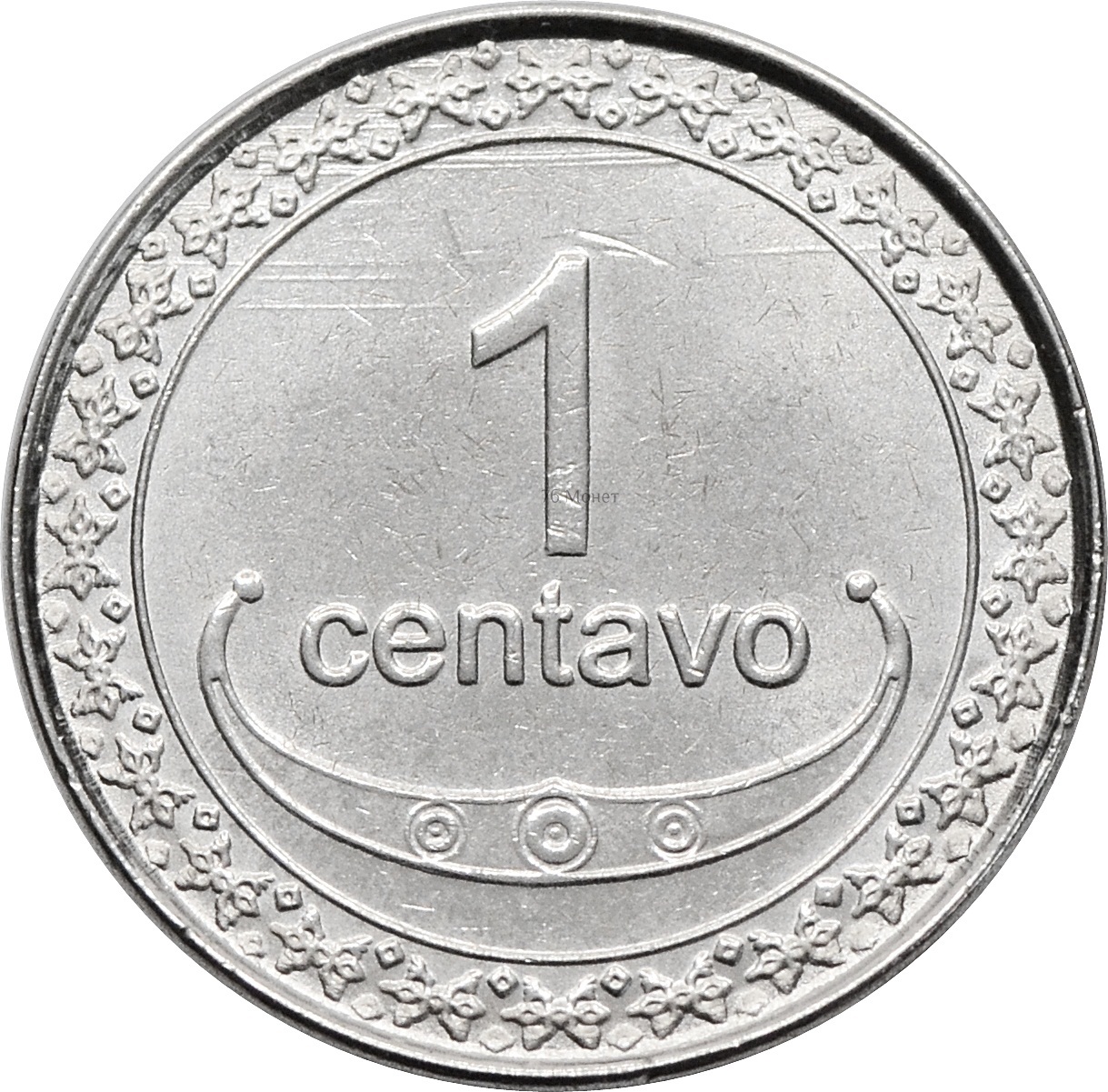 Реверс: по центру указан номинал: "1 centavo". Вдоль канта, по кругу, декоративный узор.