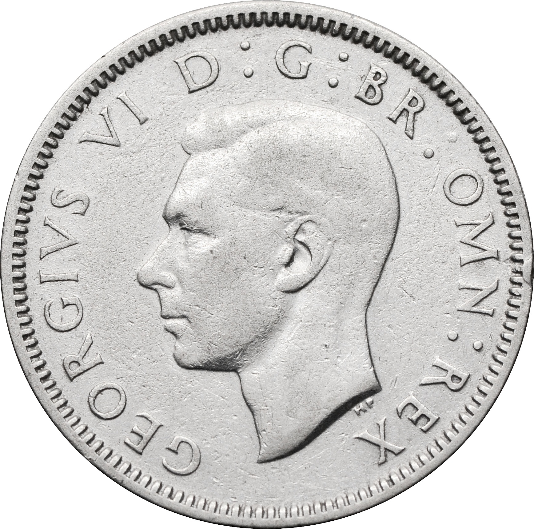 Аверс: в центре монеты размещен портрет короля Георг VI. По кругу, вдоль канта, надпись: "GEORGIVS VI D:G:BR:OMN:REX".