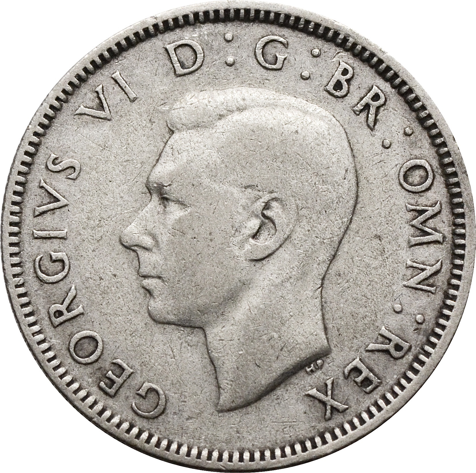 Аверс: в центре монеты размещен портрет Короля Георга VI. Вокруг него надпись полукругом: "GEORGIVS VI D:G:BR:OMN:REX HP".