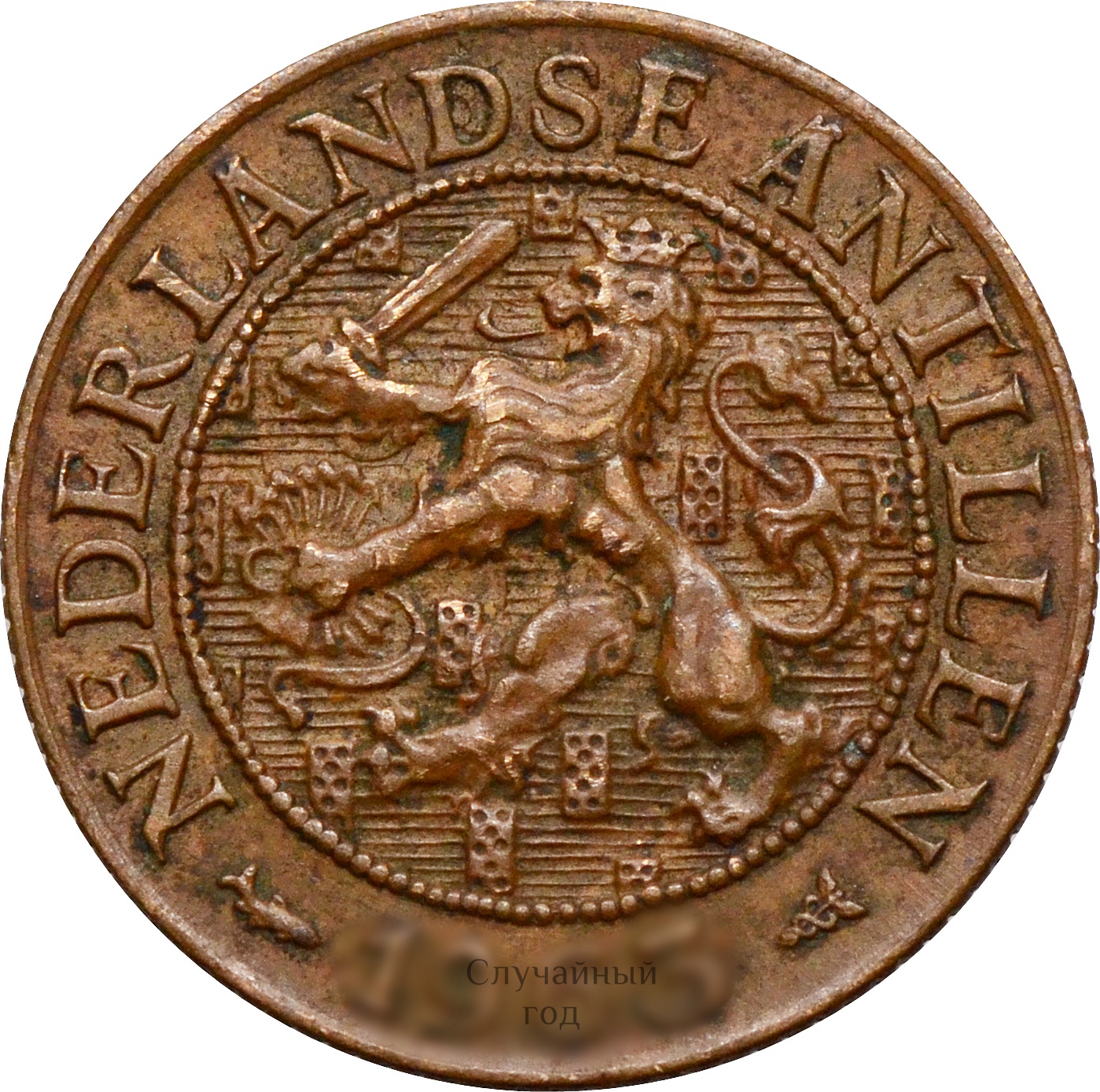 Монета 1 цент 1952-1970 (случайный год) Нидерландские Антильские острова в состоянии XF.
