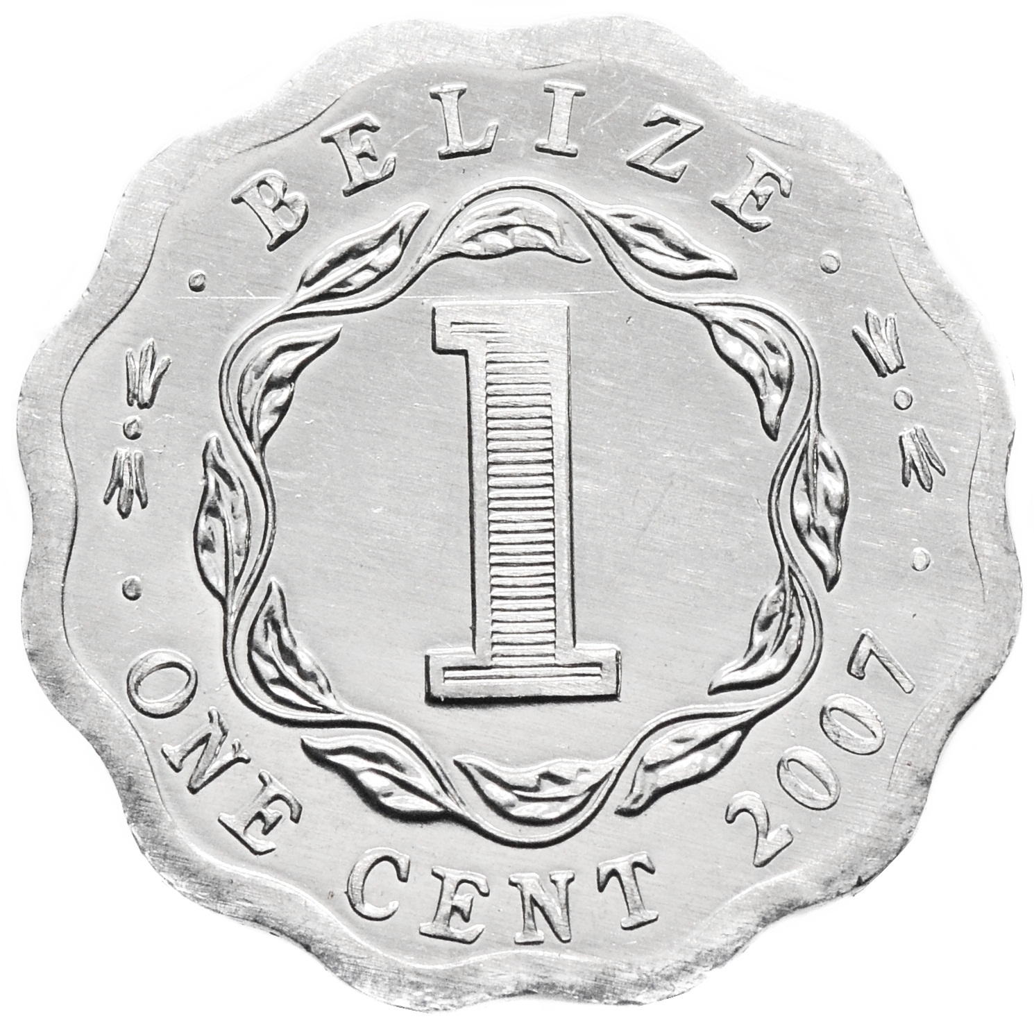 Реверс: по центру монеты указан номинал - цифра "1". Над номиналом наименование страны: "BELIZE". В самом низу располагается год чеканки: "2007" и номинал прописью: "ONE CENT".