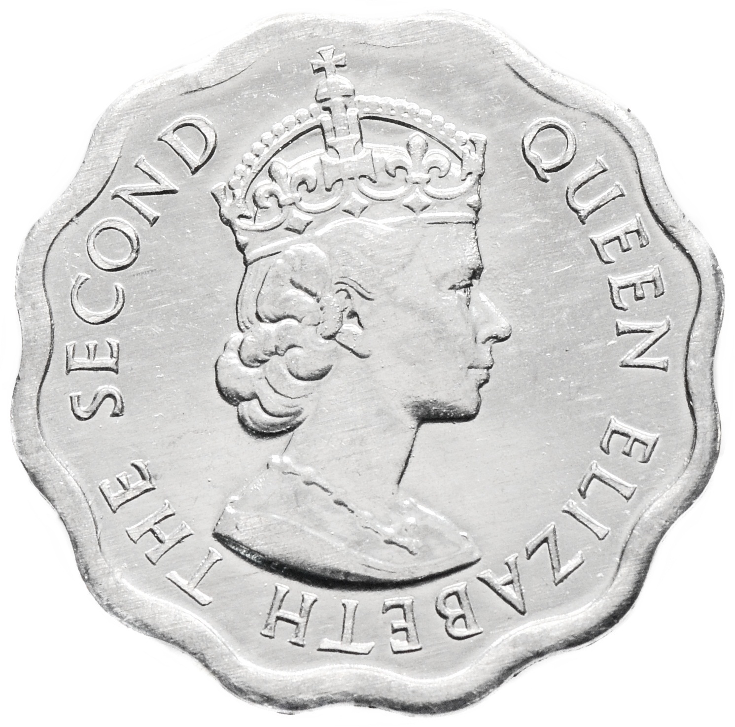 Аверс: в центре монеты изображен портрет Елизаветы 2. Под ним полукругом надпись: "QUEEN ELIZABETH THE SECOND".