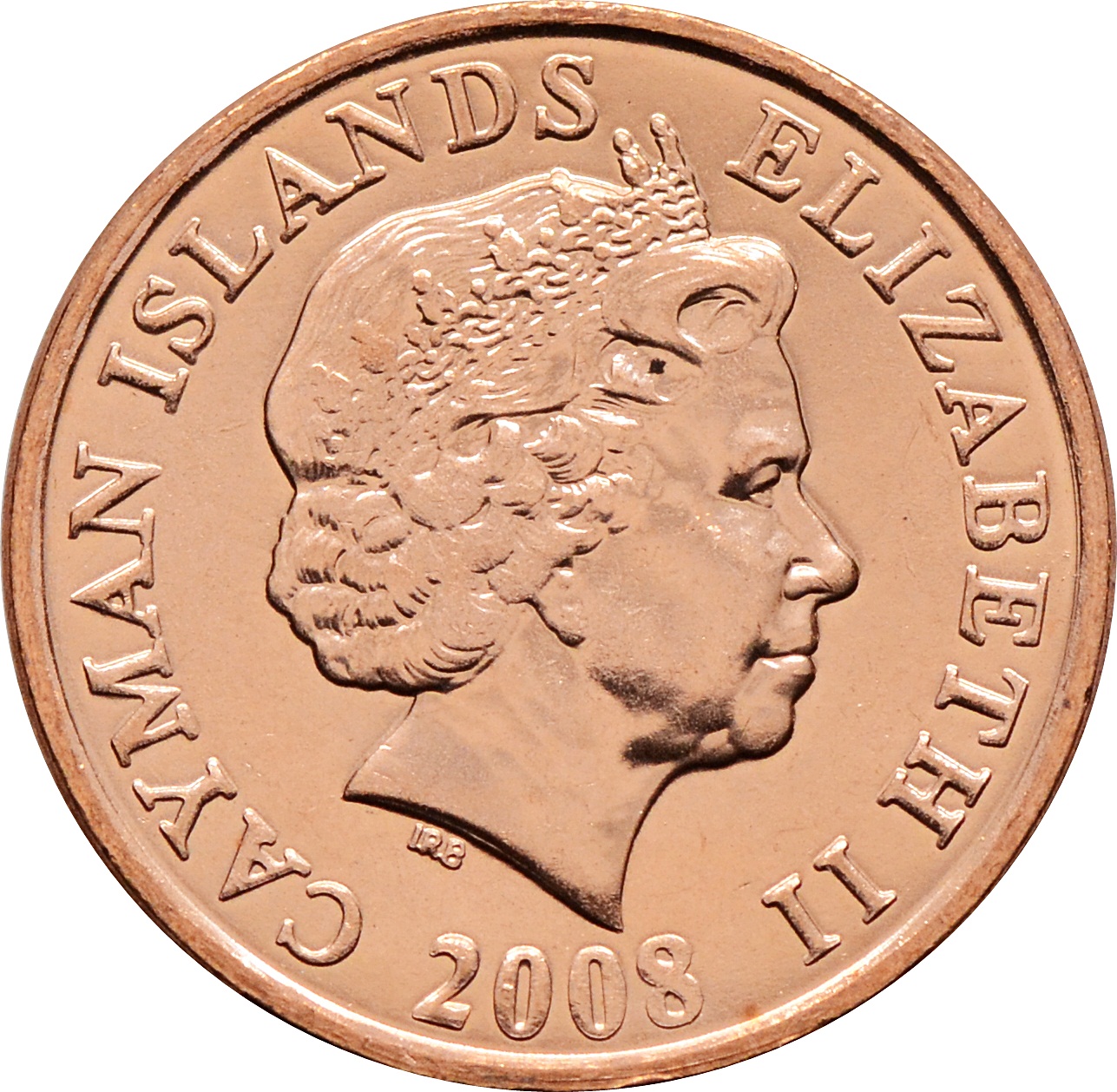 Аверс: по центру размещен портрет королевы Елизаветы второй и надписи по кругу: "CAYMAN ISLANDS * ELIZABETH II". Внизу указан год чеканки монеты: "2008".