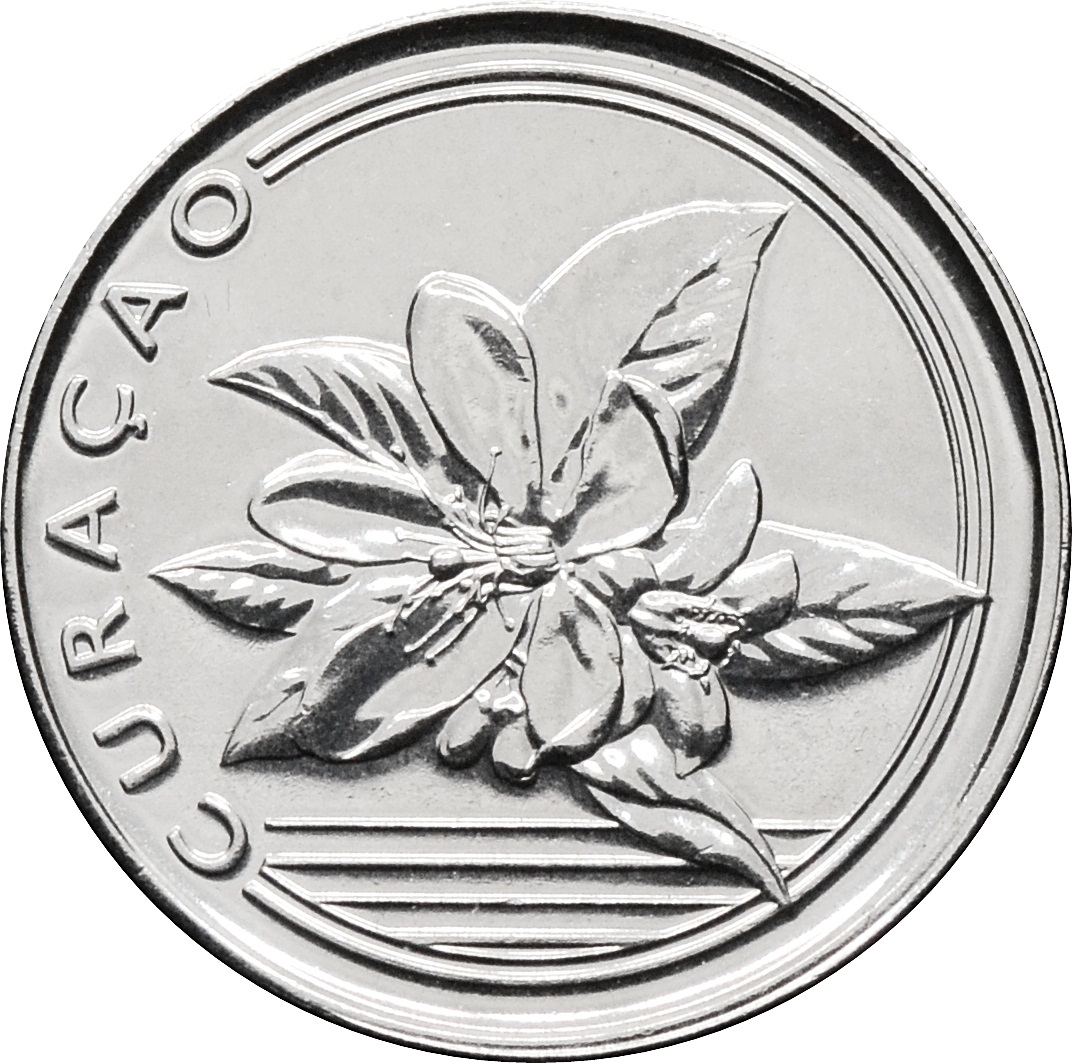 Аверс: в центре изображен цветок апельсина. Левее надпись: "CURAÇAO".