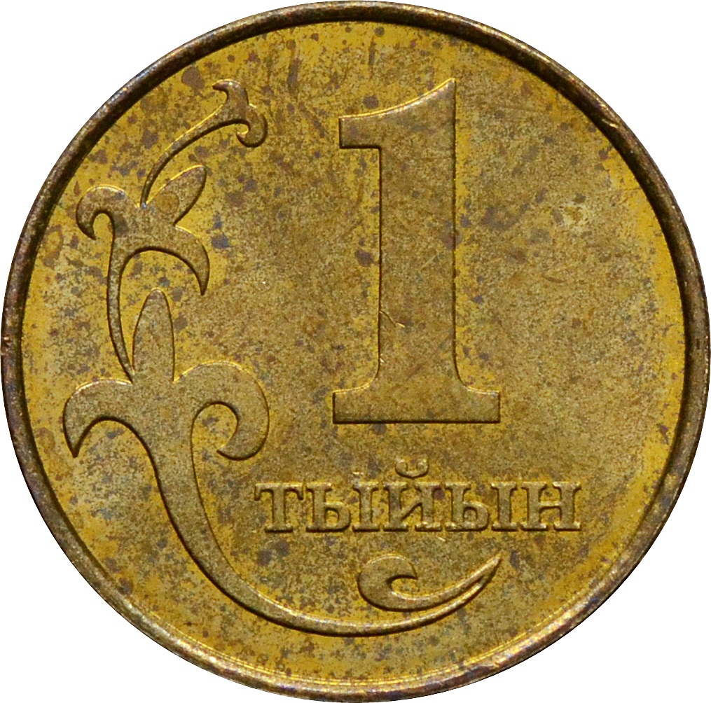 Реверс: в центре монеты указан номинал в две строки: "1 ТЫЙЫН ".