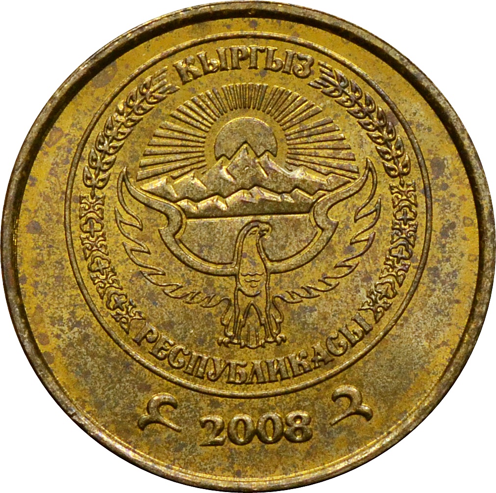 Аверс: по центру находится изображение герба Киргизии. Под ним указан год чеканки монеты: "2008".