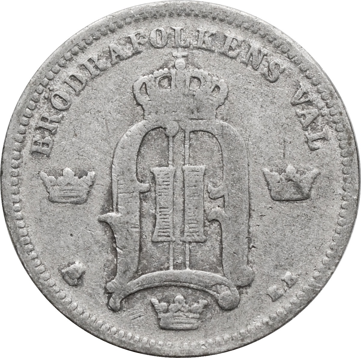 Аверс: в центре расположена монограмма короля Оскара II. Сверху надпись: "BRÖDRAFOLKENS VÄL".