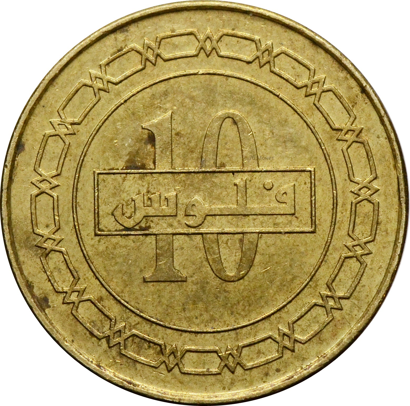 Монета 10 филсов 2010-2018 (случайный год) Бахрейн в состоянии XF (отличное).