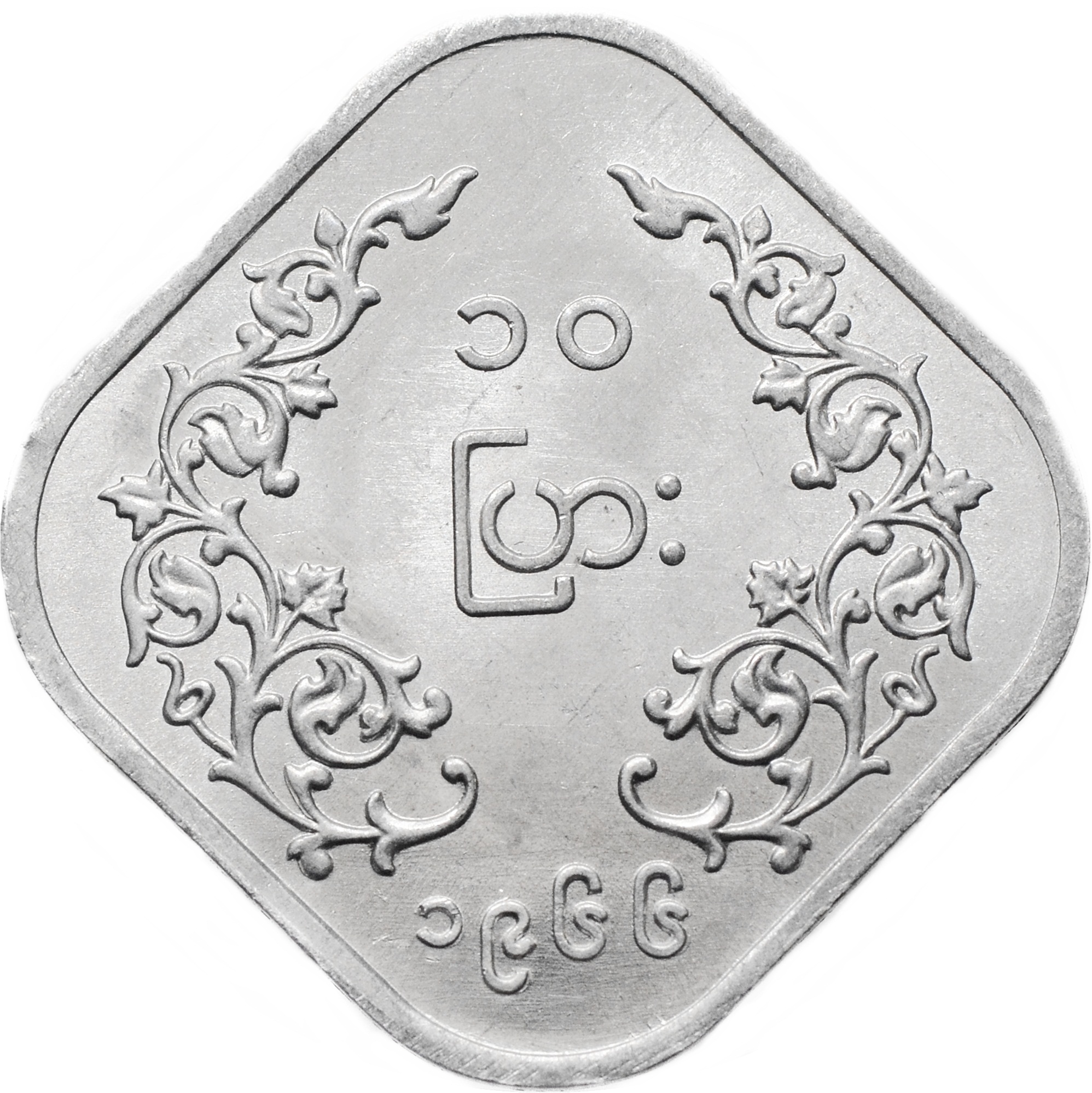 Монета 10 пья 1966 Бирма (Мьянма) Аун Сан в состоянии UNC.
