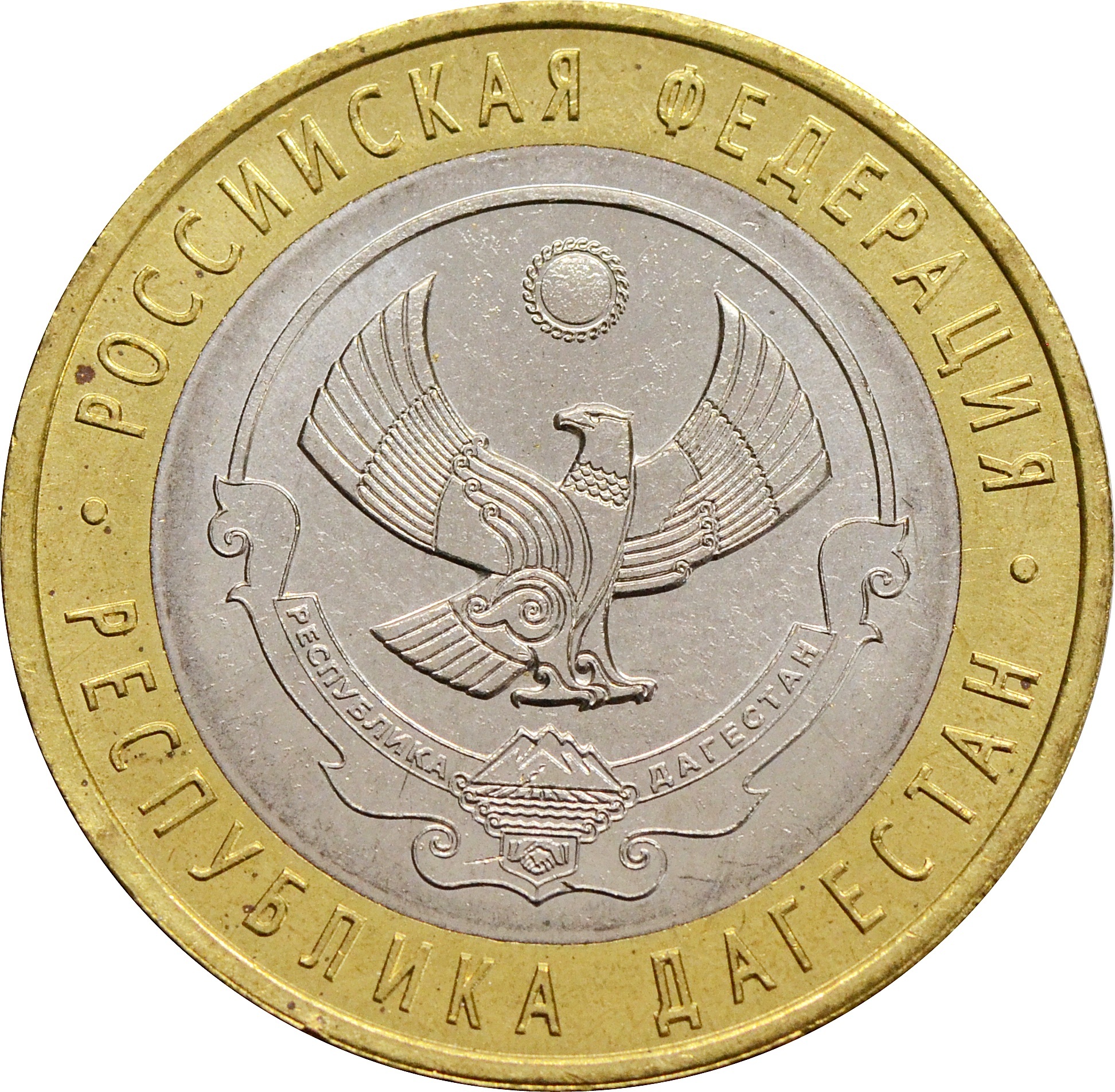 Реверс: по центру монеты изображен герб Республики Дагестан. По окружности надписи: сверху – "РОССИЙСКАЯ ФЕДЕРАЦИЯ", снизу – "РЕСПУБЛИКА ДАГЕСТАН".