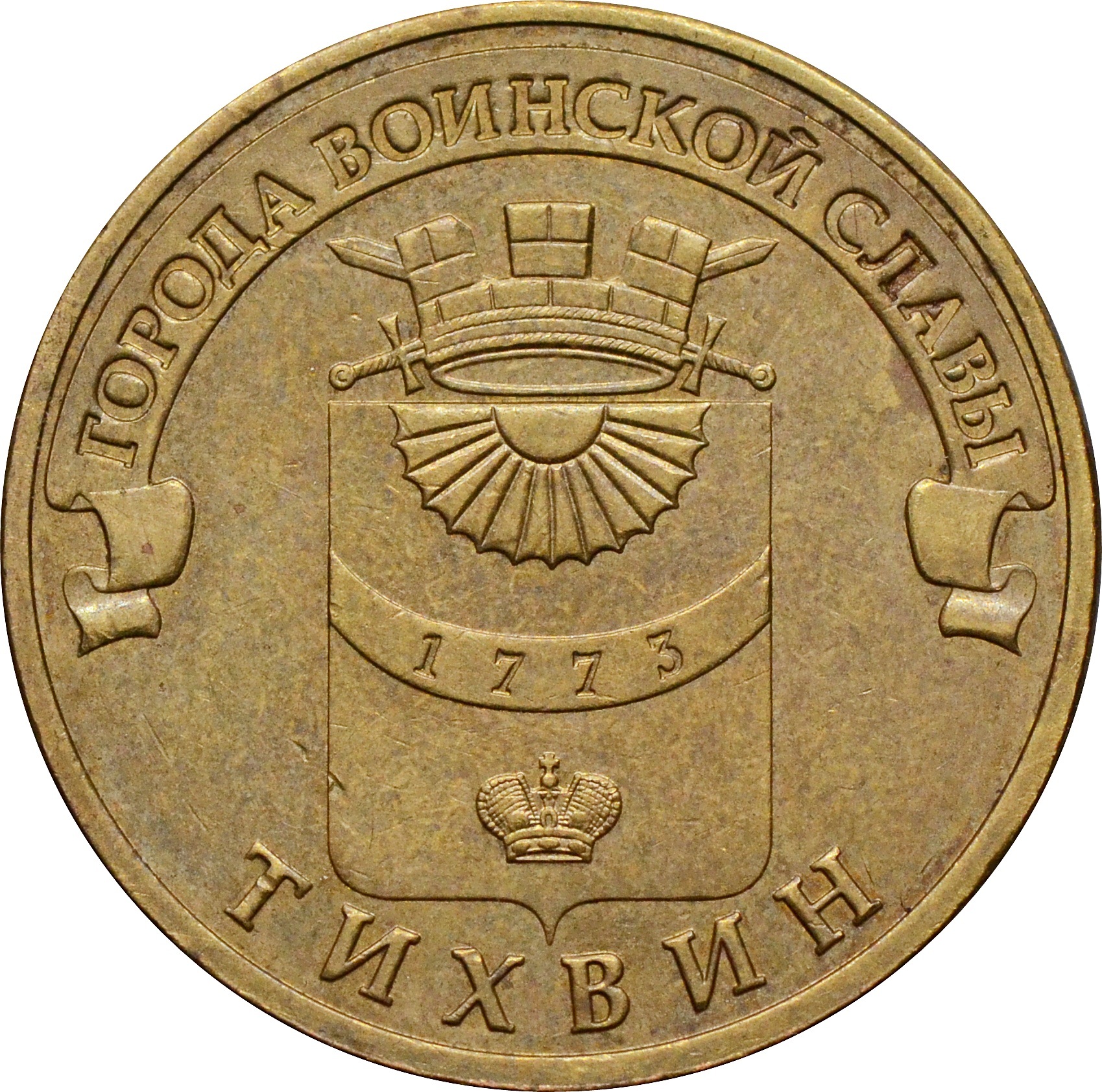 Монета 10 рублей 2014 Тихвин (ГВС) в состоянии XF.
