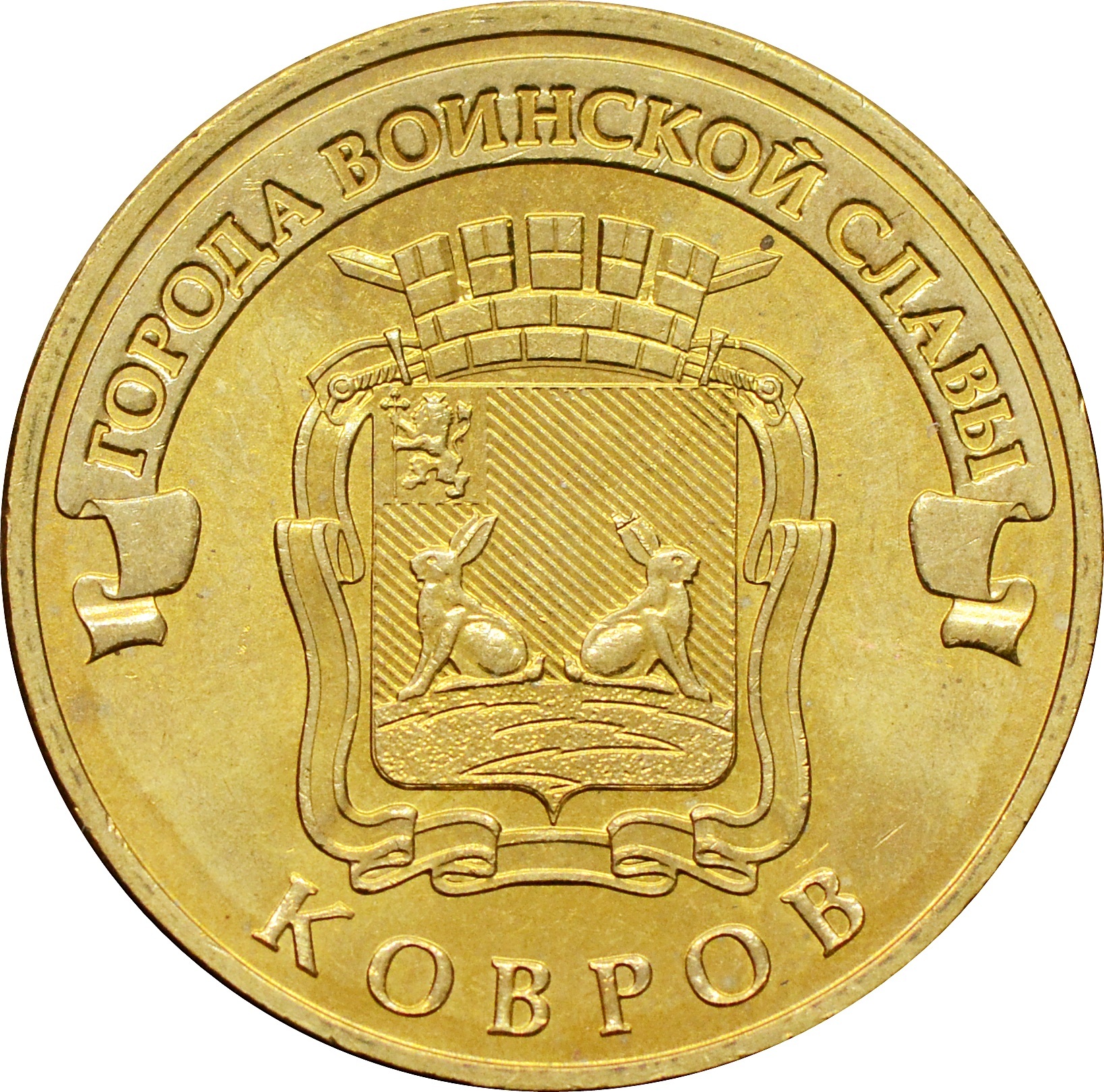 Монета 10 рублей 2015 Ковров (ГВС) в состоянии XF.