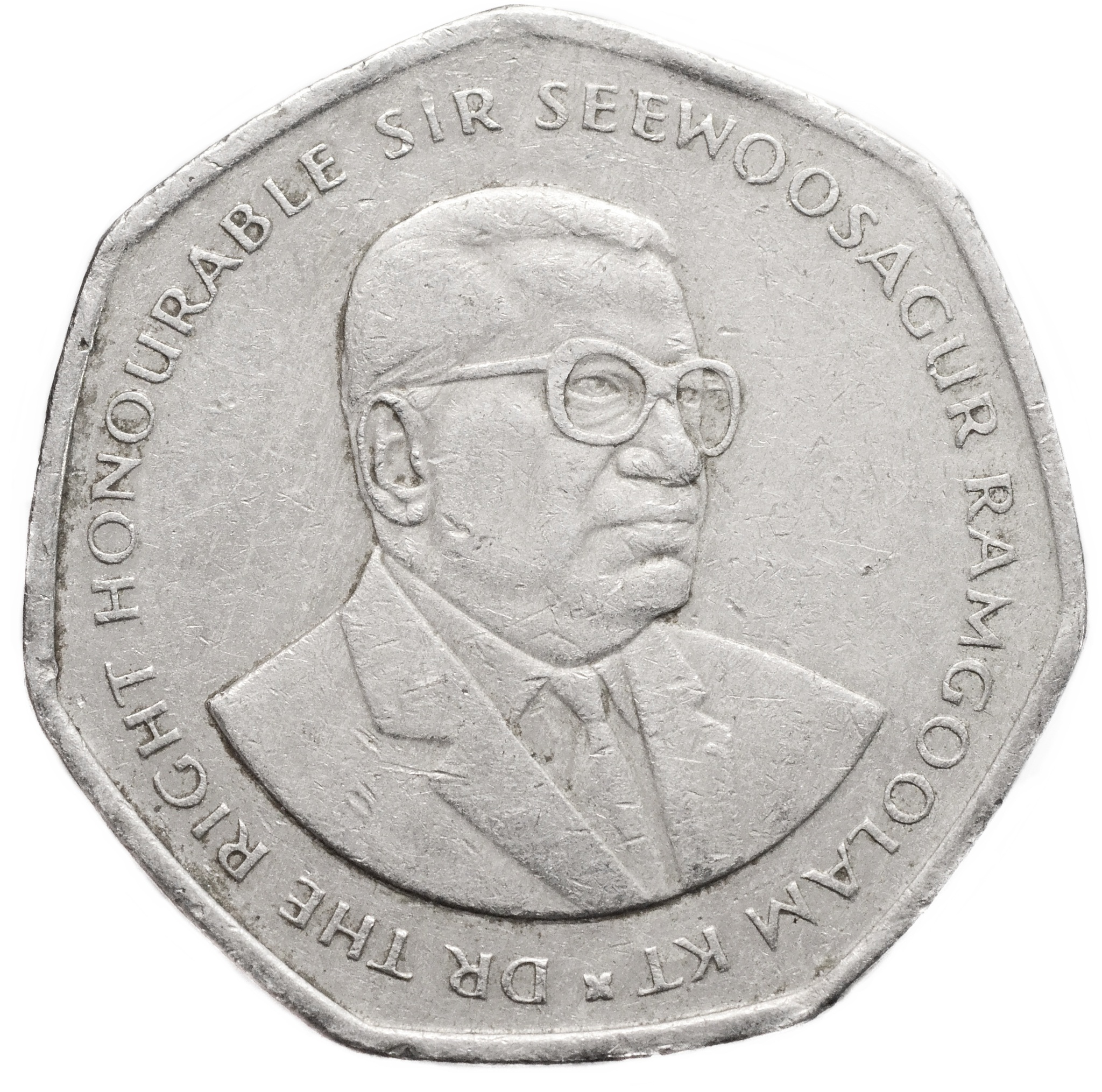 Аверс: в центре монеты расположен портрет первого премьер-министра Сивусагура Рамгулама. Вдоль края монеты круговая надпись: "DR. THE RIGHT HONOURABLE SIR SEEWOOSAGUR RAMGOOLAM KT".