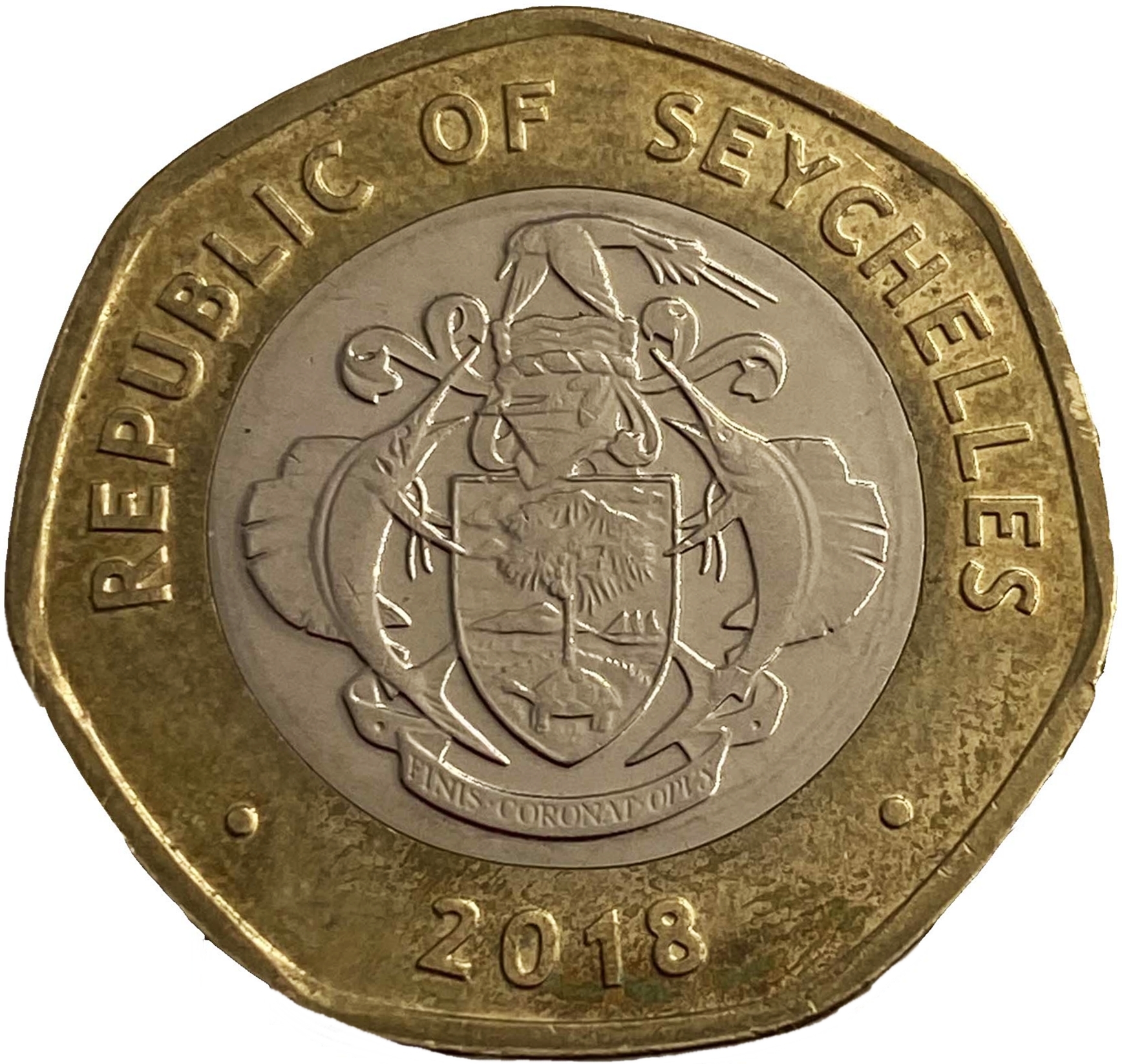 Аверс: по центру расположен герб страны. Под гербом год чеканки монеты: "2018", а в верхней части надпись полукругом: "REPUBLIC OF SEYCHELLES".