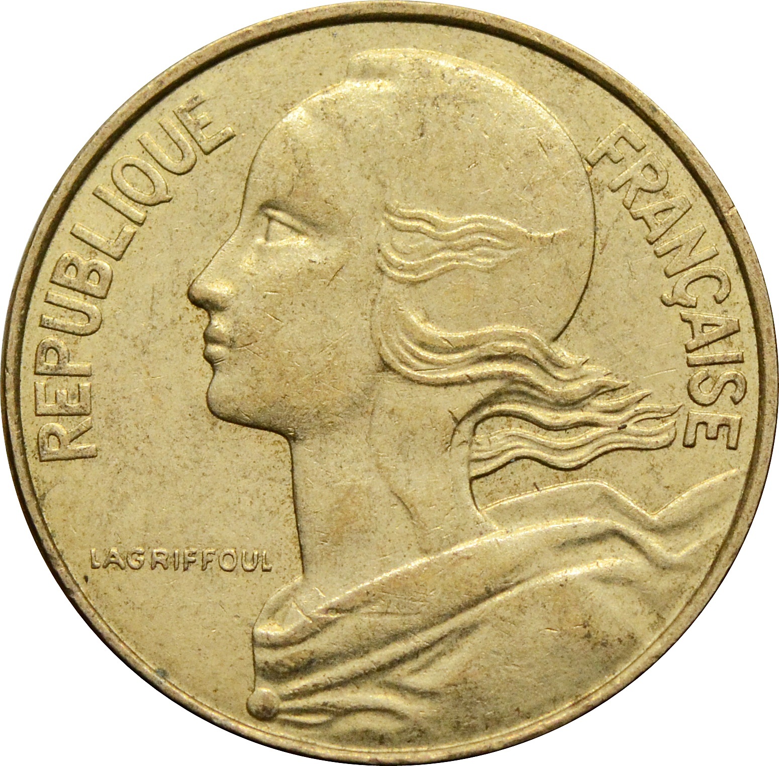 Аверс: в центре бюст Марианны в фригийском колпаке (олицетворение Франции), сверху полукругом надпись: "REPUBLIQUE FRANÇAISE".