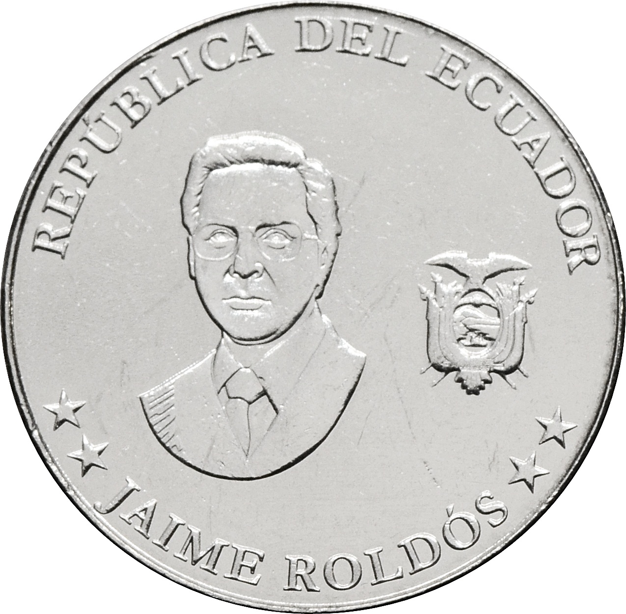 Аверс: в центре монеты портрет Хайме Рольдос. Вдоль края монеты надписи: внизу - "JAIME ROLDÓS", а вверху - "RUPUBLICA DEL ECUADOR".