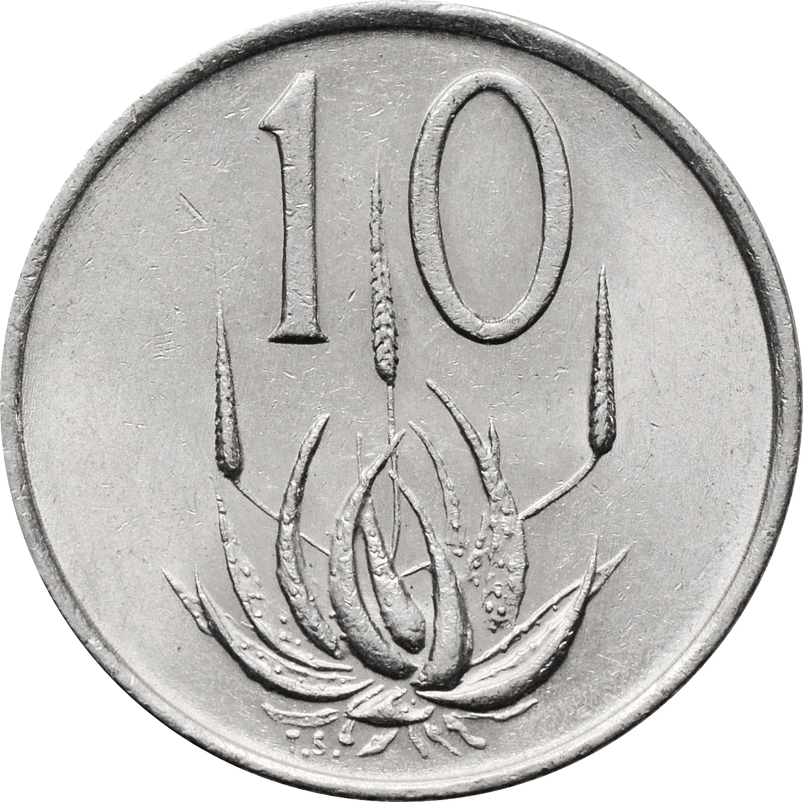 Монета 10 центов 1970-1989 (случайный год) ЮАР в состоянии XF (очень хорошее).