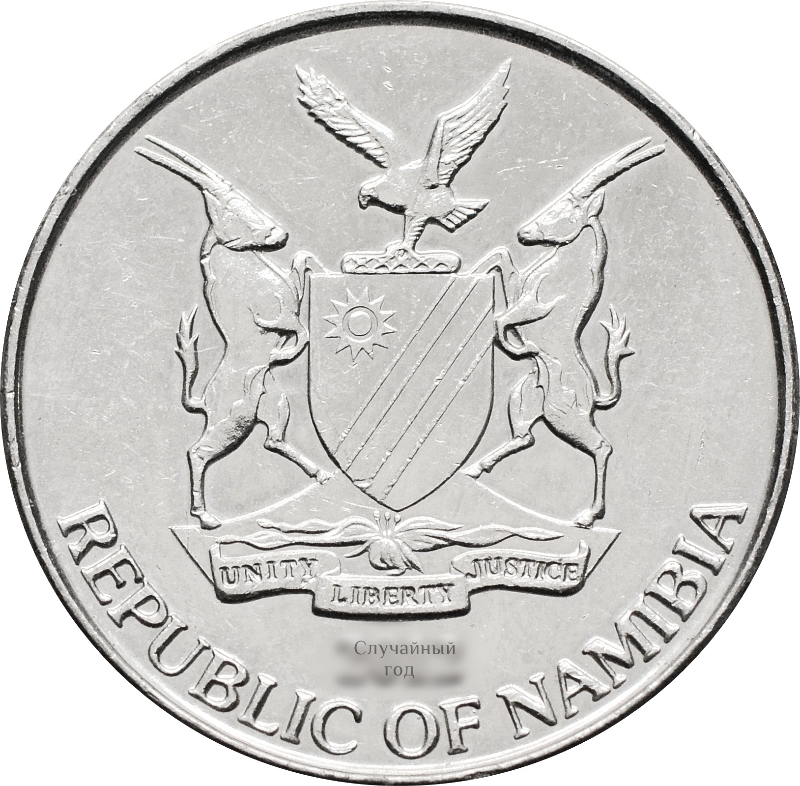 Аверс: по центру монеты расположен герб Намибии, ниже, вдоль канта, надпись: "REPUBLIC OF NAMIBIA".