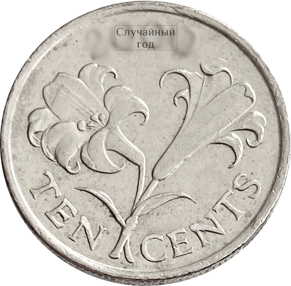 Реверс: в центре изображен цветок. Снизу указан номинал прописью: "TEN CENTS". Сверху расположен год чеканки.
