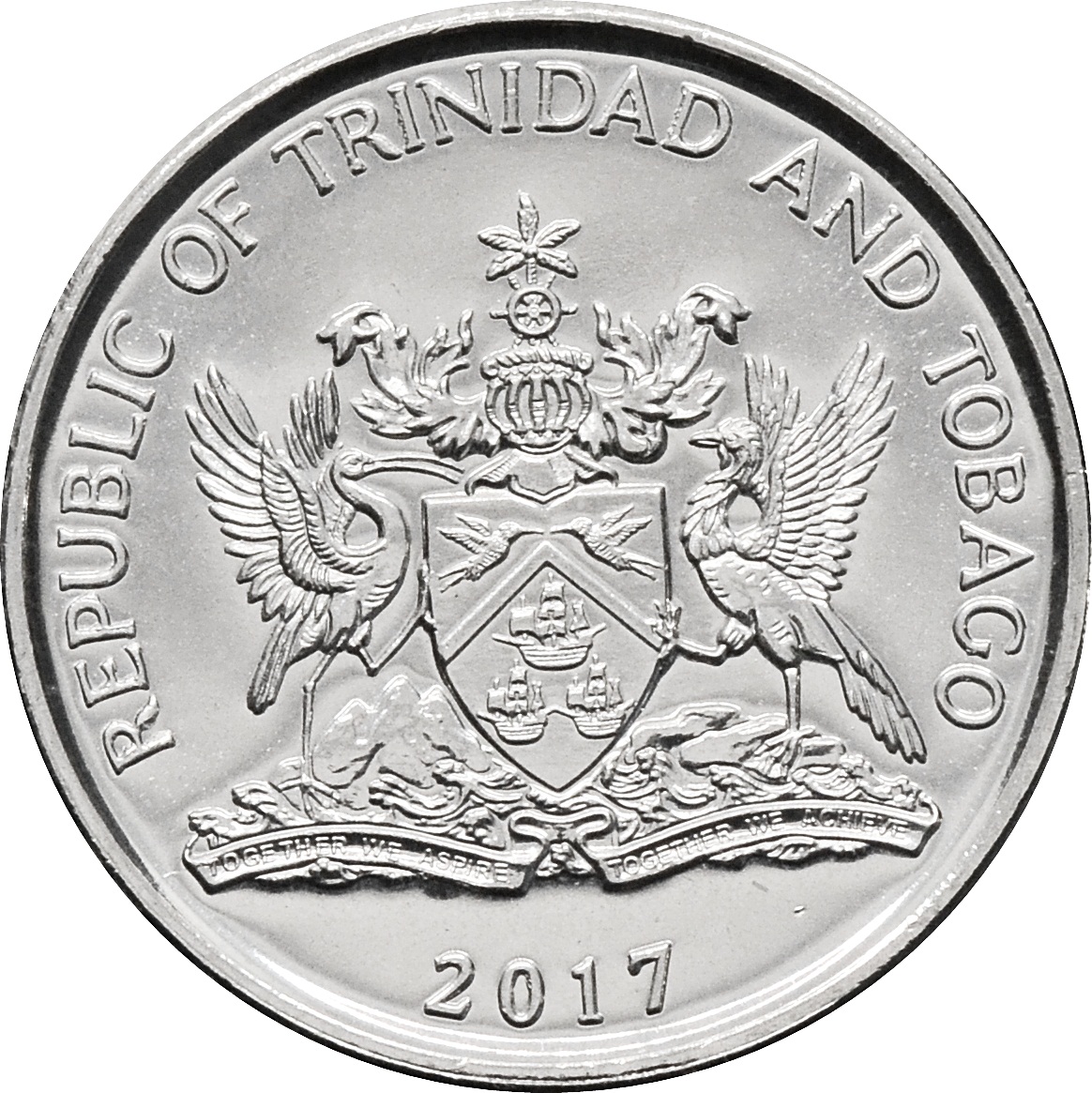 Аверс: по центру монеты расположен герб страны. Вокруг него, полукругом, надпись: "REPUBLIC OF TRINIDAD AND TOBAGO". В самом низу указан год чеканки: "2017".