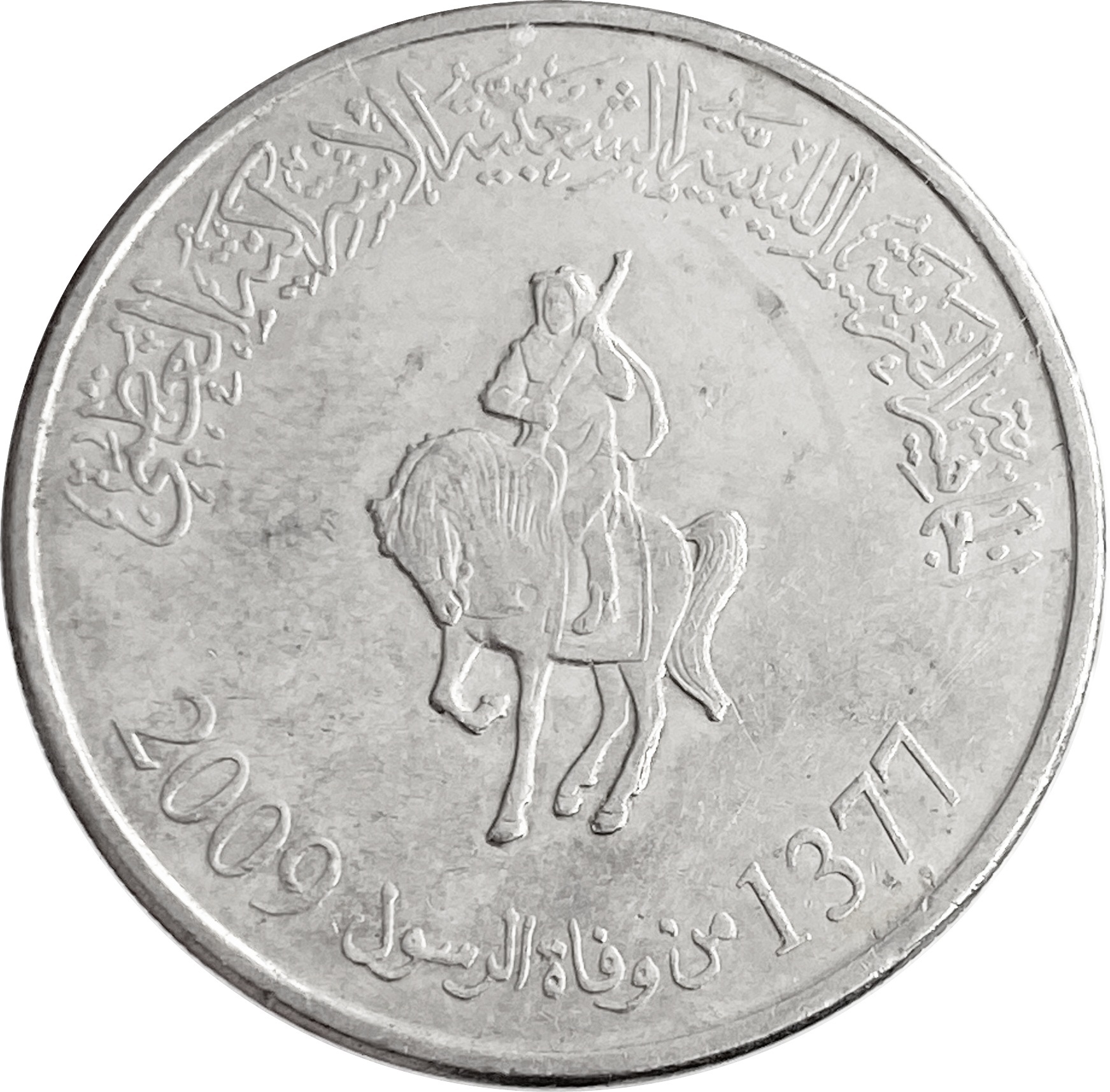 2009". Сверху надпись: "الجماهرية العربية الليبية الشعبية الإشتراكية العظمى من وفاة ارسول".