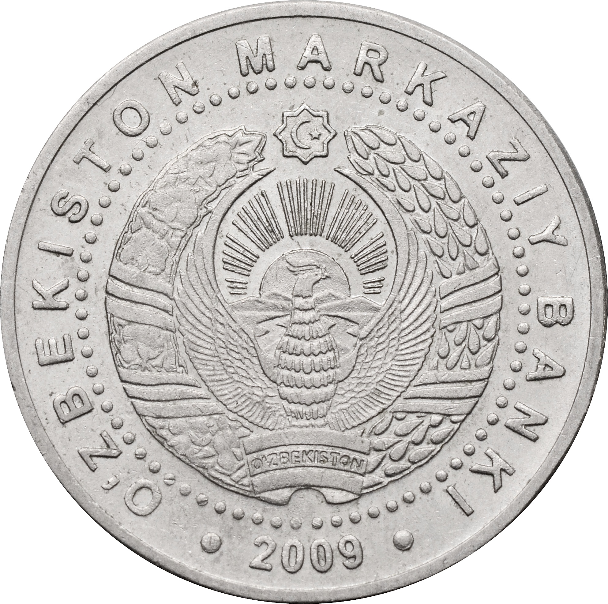 Аверс: в центре монеты изображен Герб Республики Узбекистан, вокруг которого надпись: "OʻZBEKISTON MARKAZIY BANKI". Снизу указан год чеканки монеты: "2009".