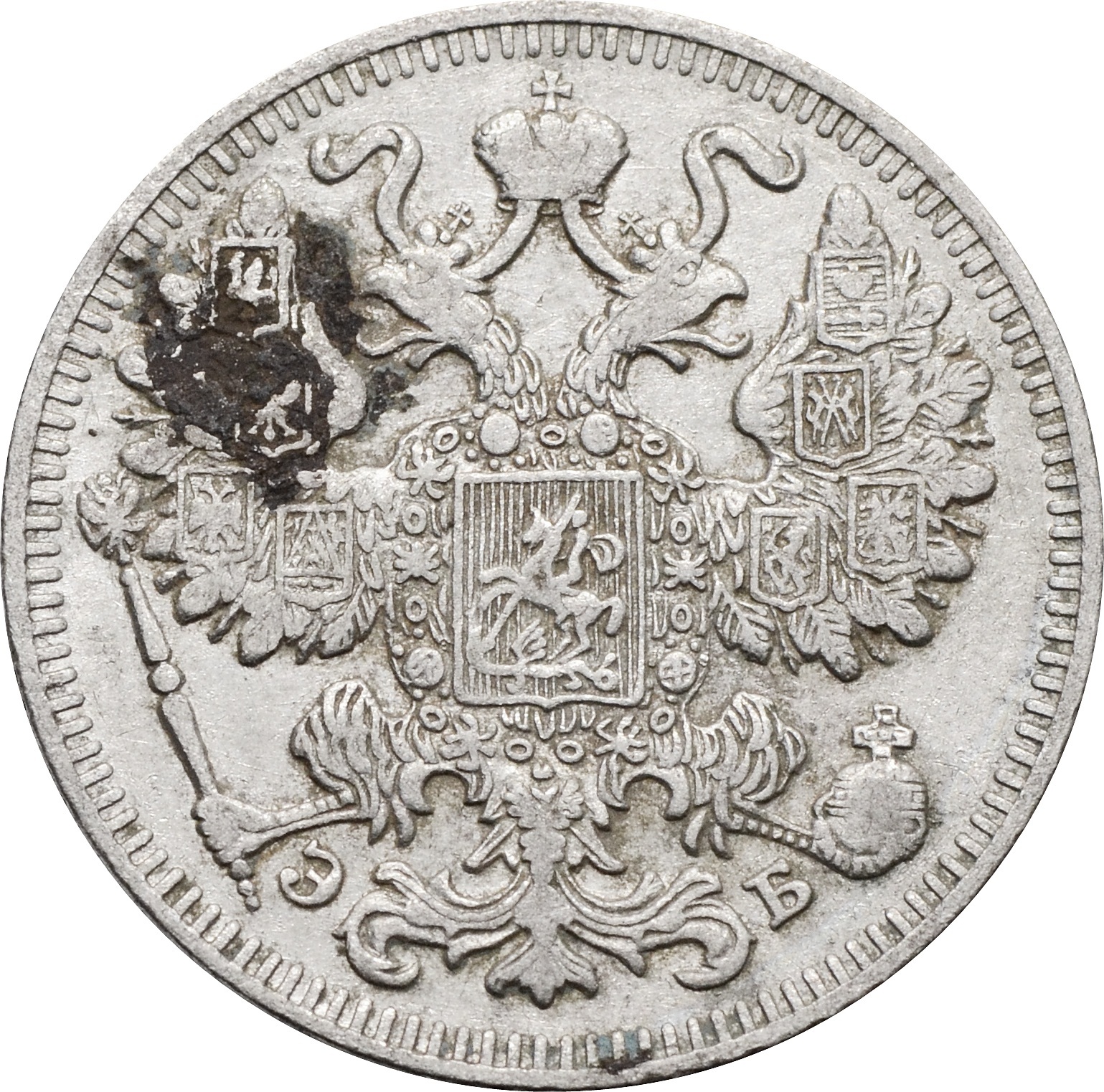 Монета 15 копеек 1909 СПБ-ЭБ Николай в состоянии VF.