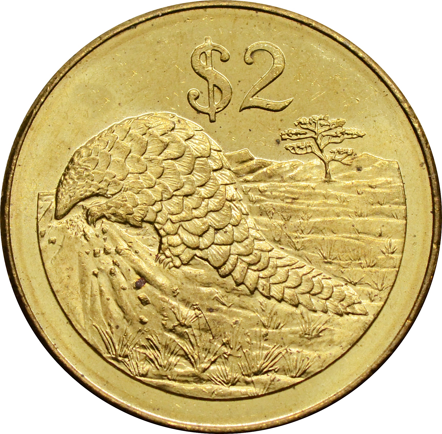 Реверс: по центру изображен степной Ящер - Панголин. Над ним указан номинал: "$ 2".