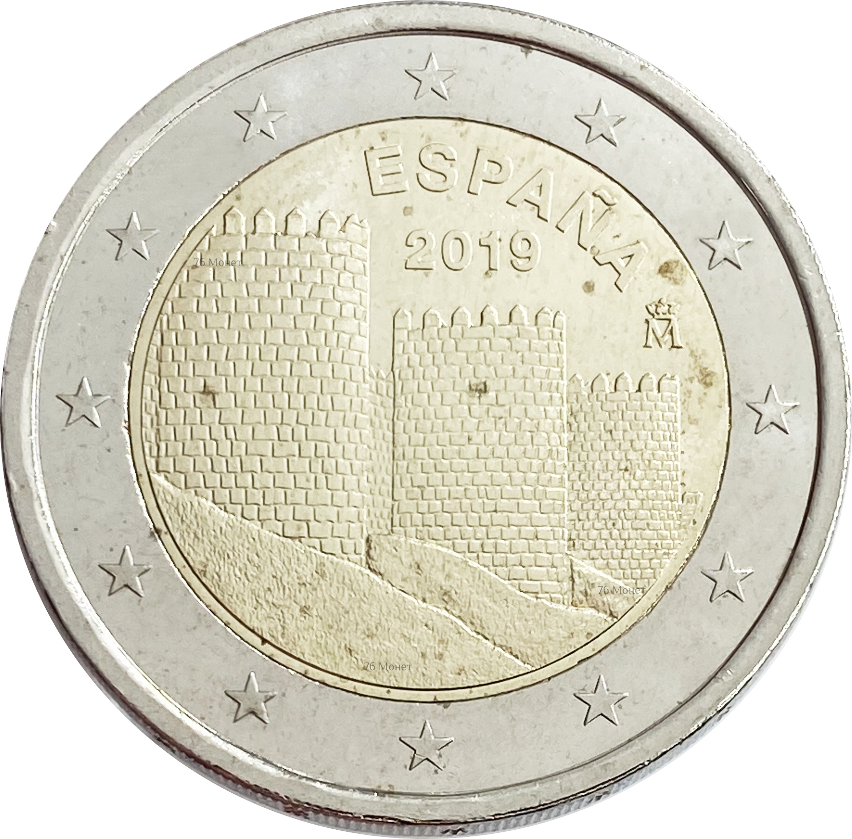 Аверс: по центру изображена Авила - старый город, стена крепости. Сверху надпись: "ESPAÑA", чуть ниже год чеканки: "2019".