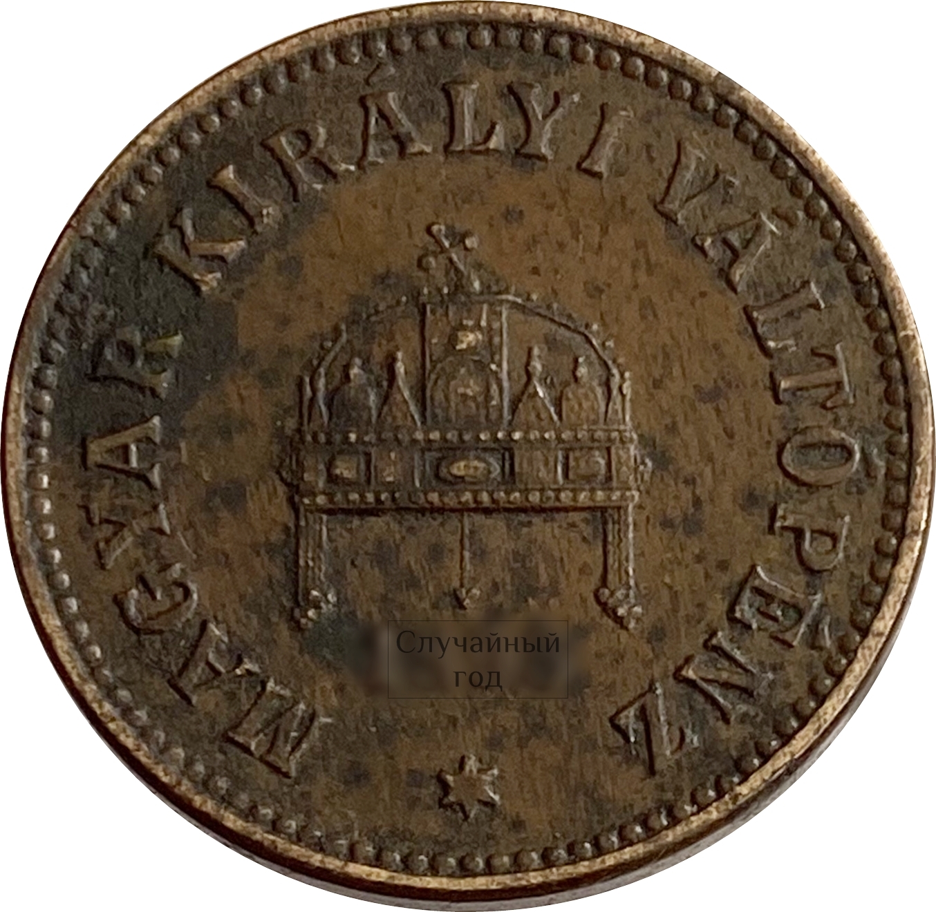 Монета 2 филлера 1892-1915 (случайный год) Венгрия в состоянии XF (очень хорошее - отличное).
