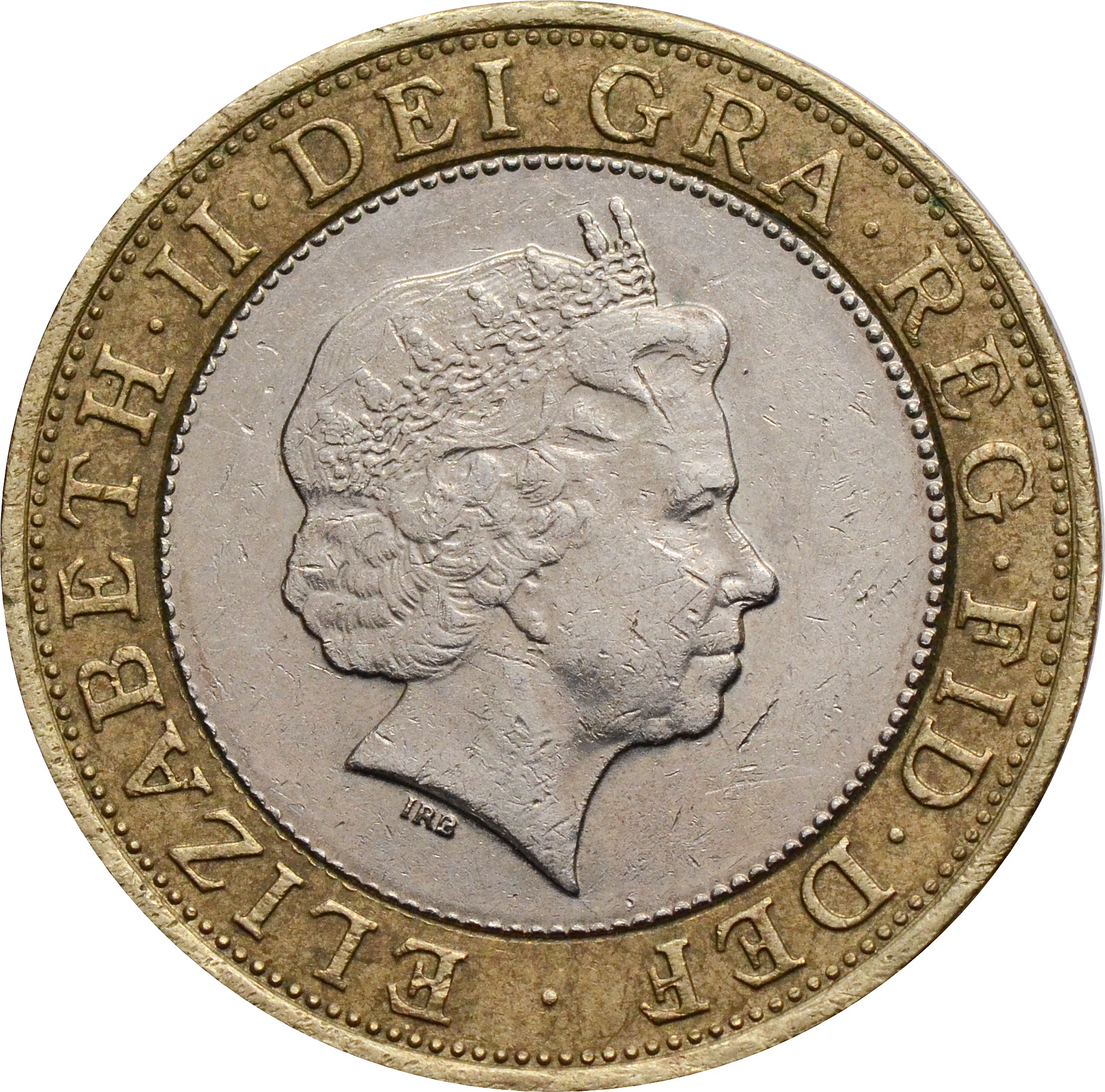 Реверс: по центру узоры. Вдоль канта указан номинал: "TWO POUNDS" с годом чеканки: "2003".